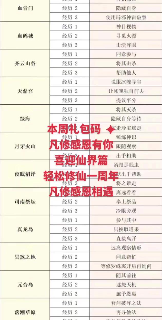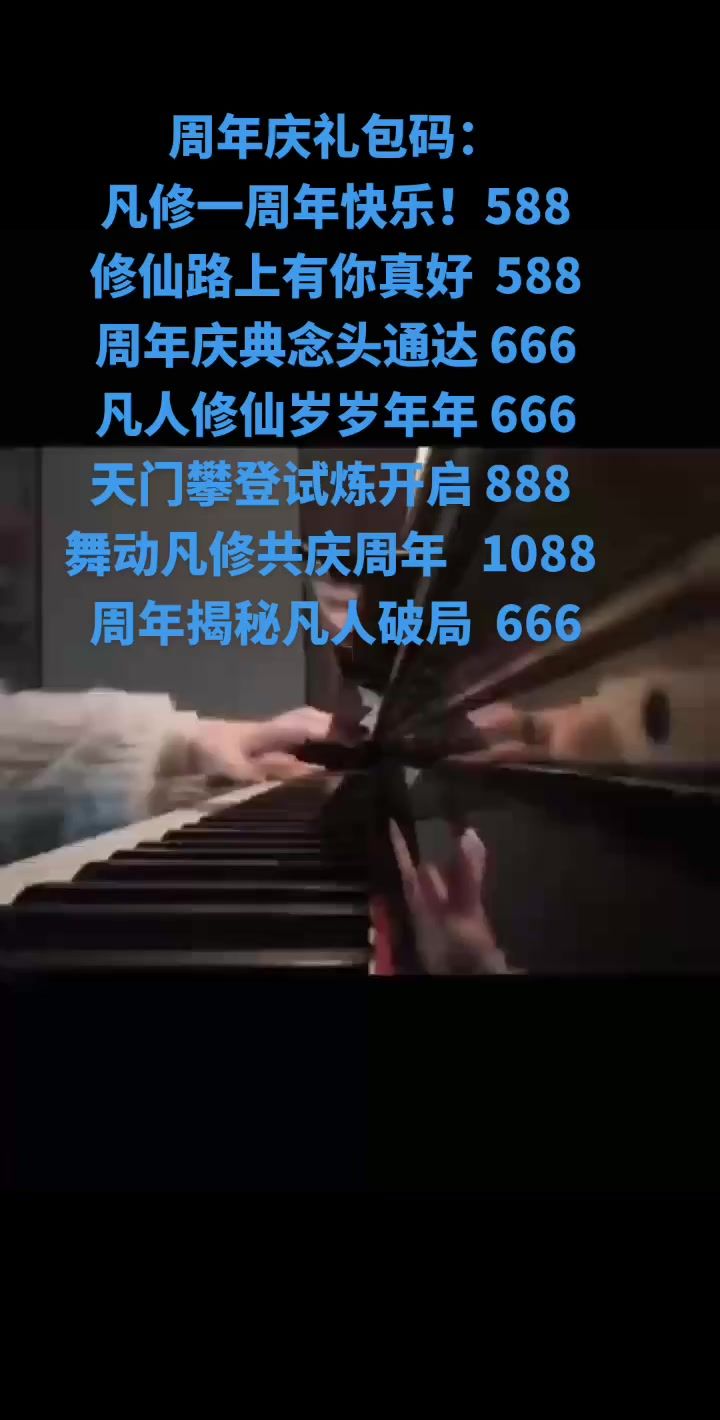 周年庆礼包码: 凡修一周年快乐!588 修仙路上有你真好 588 周年庆典念头通达 666 凡人修仙岁岁年年 666 天门攀登试炼开启 888 舞动凡修共庆周年 1088 周年揭秘凡人破局 666 看到后面有攻略呢#游戏福利 #游戏讨论