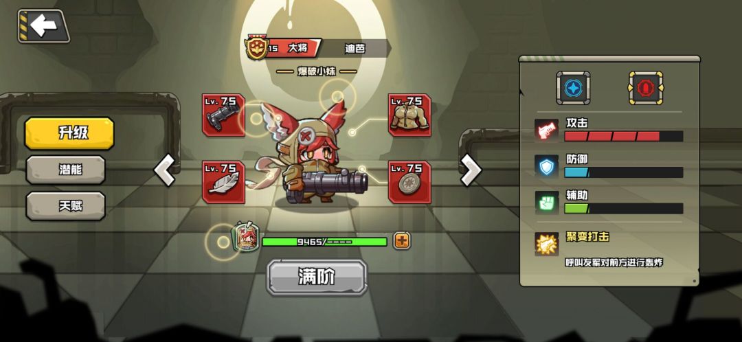 难度很低,20级就能推,注意不要打通关,扫荡给的碎片少,手动两次碎片多,最后一关只打一路,另一路投降就行。 分配方案:大炮,坦克,飞行兵 炸弹人,盾兵,直升机 火箭筒后期用处真不大,为了小兵没必要刷太高。