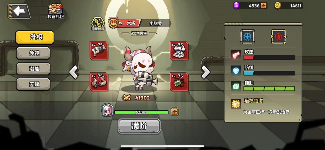 4-10困难攻略 配置 前线51级 角色9阶 前线等级越高,对角色的练度要求越低 小兵 要求跑的快,召唤快,数量多 过关思路 1,开局召唤狙击手,去打第一个boss,记得升级一下弄个落雷,减速或双倍伤害,这三个任意一个都可以。 打第一个怪的时候不要召唤小兵 2,等到第二个boss登场的时候,角色不要越过前线即可通关