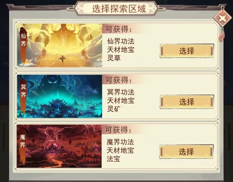 整体功能: 1. 多账号绑定功能: 类似于网易的藏宝阁,数据迁移。帝尸挺多的,总不能登录一次,问对方要一次验证码吧?很不方便。 2. 机缘事件优化: 2.1 快速选择游历 便于直接选择七星石或其他所需材料游历,而不至于一个个界域去反复点击寻找。 建议:天材地宝中,可新增天材地宝的下拉选择框,置于X星界域下拉选择框左侧,同时X星界域下拉选择框增加全部界域选择项。实现快速筛选全界域的某个材料