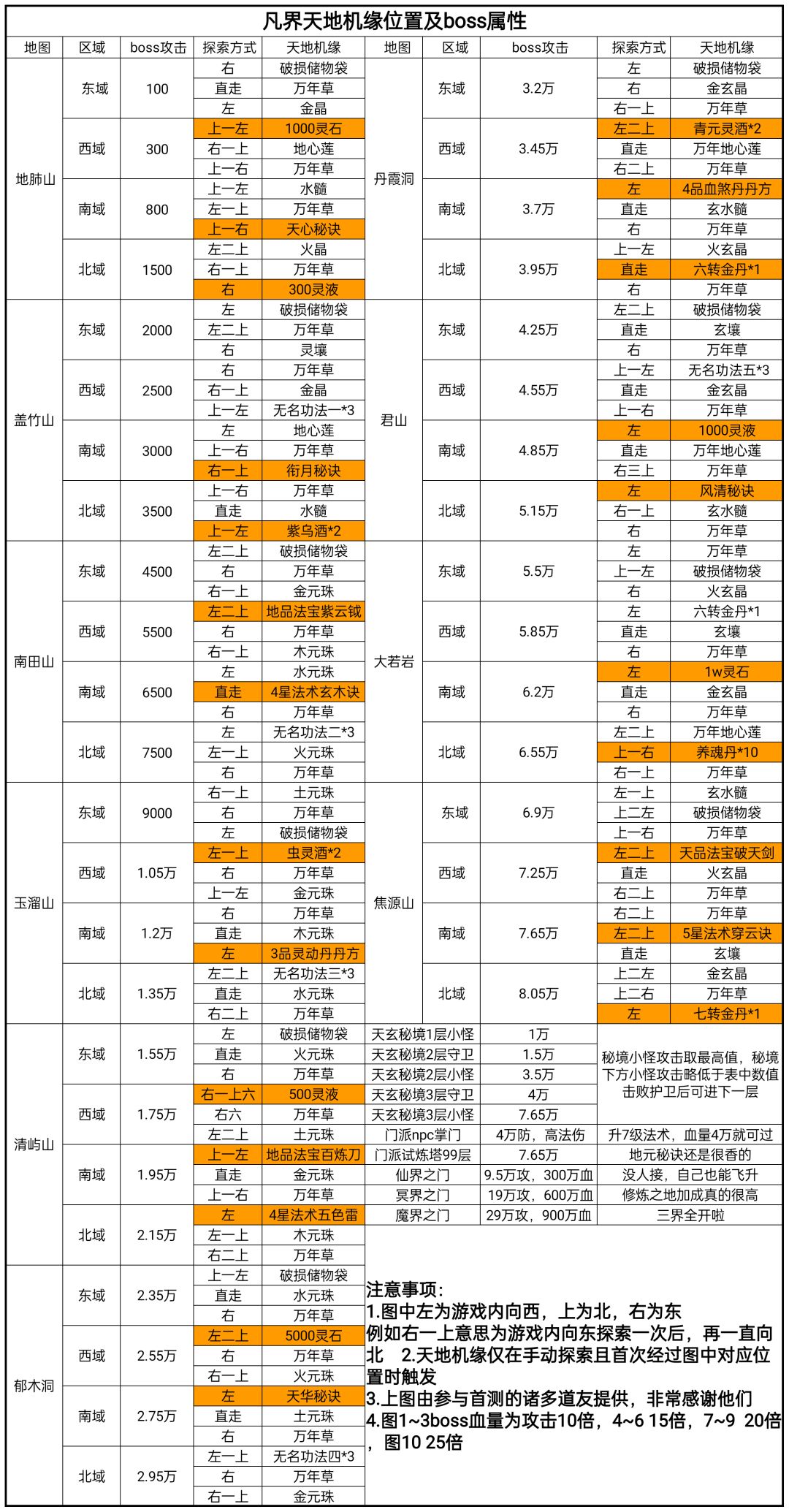 1.凡界十图增加门派NPC掌门属性,魔界之门属性,优化排版 2.三界重要boss属性 增加了极乐界、九天十地之门,灵缈园,仙道塔200层,玄冥关鬼王属性 3.聚灵阵升级节点更新至297级 4.仙界宗门遗址,机缘之地位置补充完整 5.新增表格:三塔抗性 删除原有门派试炼塔,仙宗仙道塔表格 6.宠物可觉醒天赋表更新 突然诈尸更新一点攻略内容 算起来,上一次更新帖子都是一年前了,哎,有机会的话,明年再见