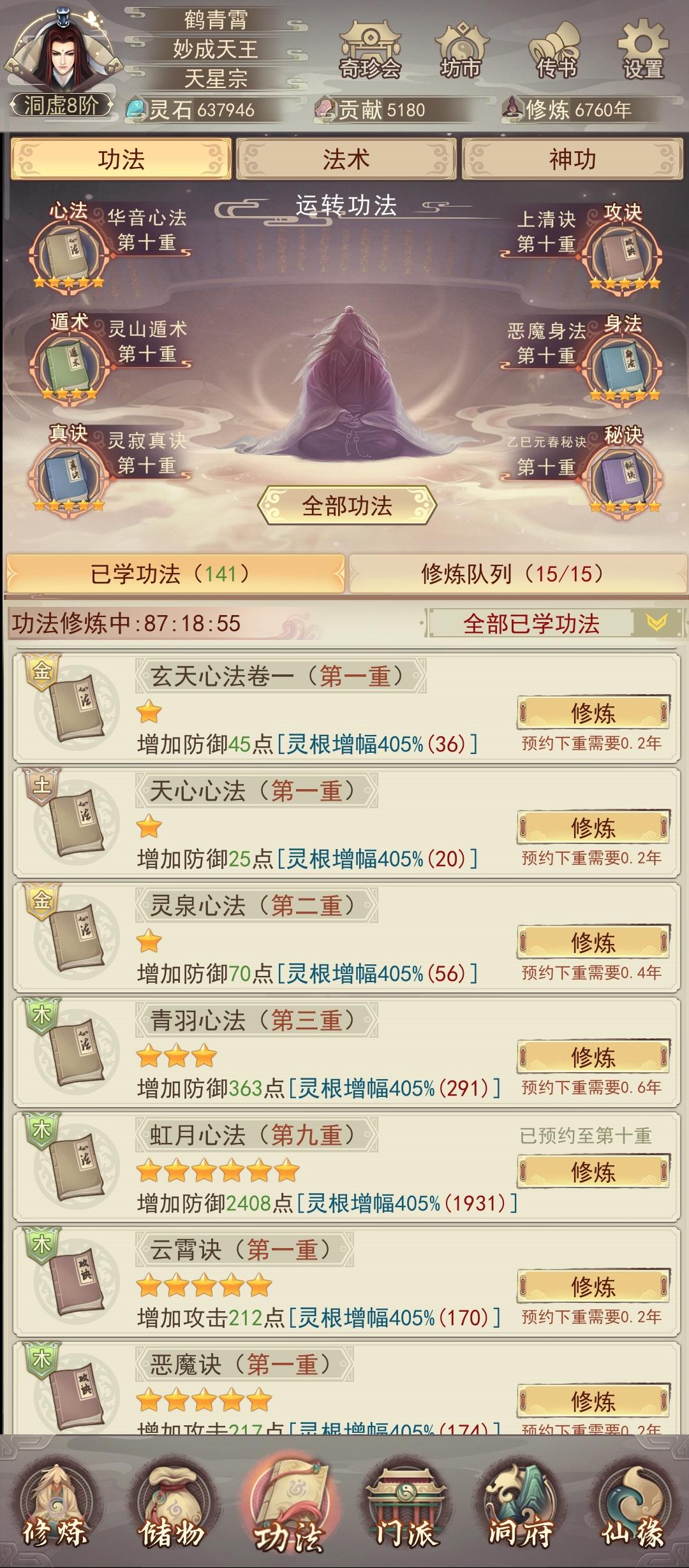 浑浑噩噩两万载,走了不少弯路,多亏了群里各位大佬帮忙也不算太差,唯一的遗憾就是终究没能突破大罗。仙宗的法术是真恶心啊,刚上天没多久就差两本,快大罗了还差两本。