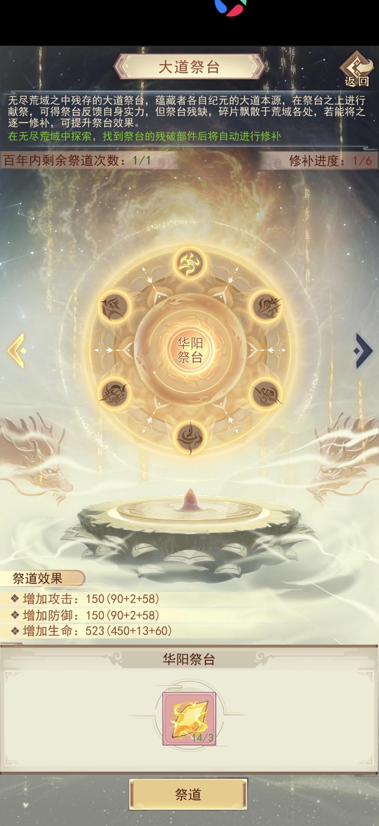 如图,花了3000玄黄,绕路用了五六天进度解锁了华阳祭坛,结果得到的是每天玄黄消耗+50,多加的5点攻防比蚊子腿还蚊子腿了,这对吗?给的祭台属性过于扣了嗷,兄弟们还是等图三探索的差不多了再来解锁这玩意吧