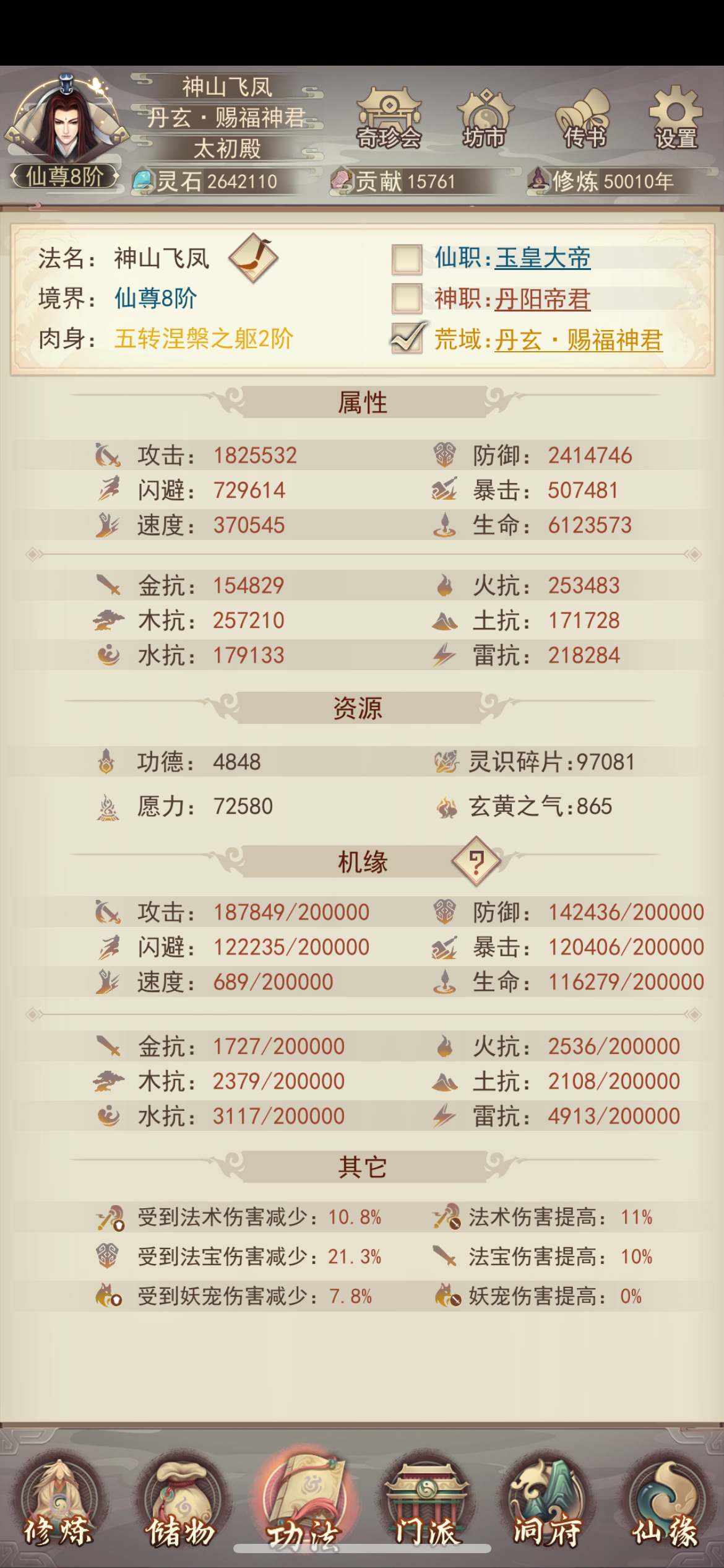 #凡人传说 #凡人传说属性 真绝193.5防险胜进入无尽荒域,削弱进度71%,未吃符,买完道花194,多打一回合估计我可能就失败了,真是极限
