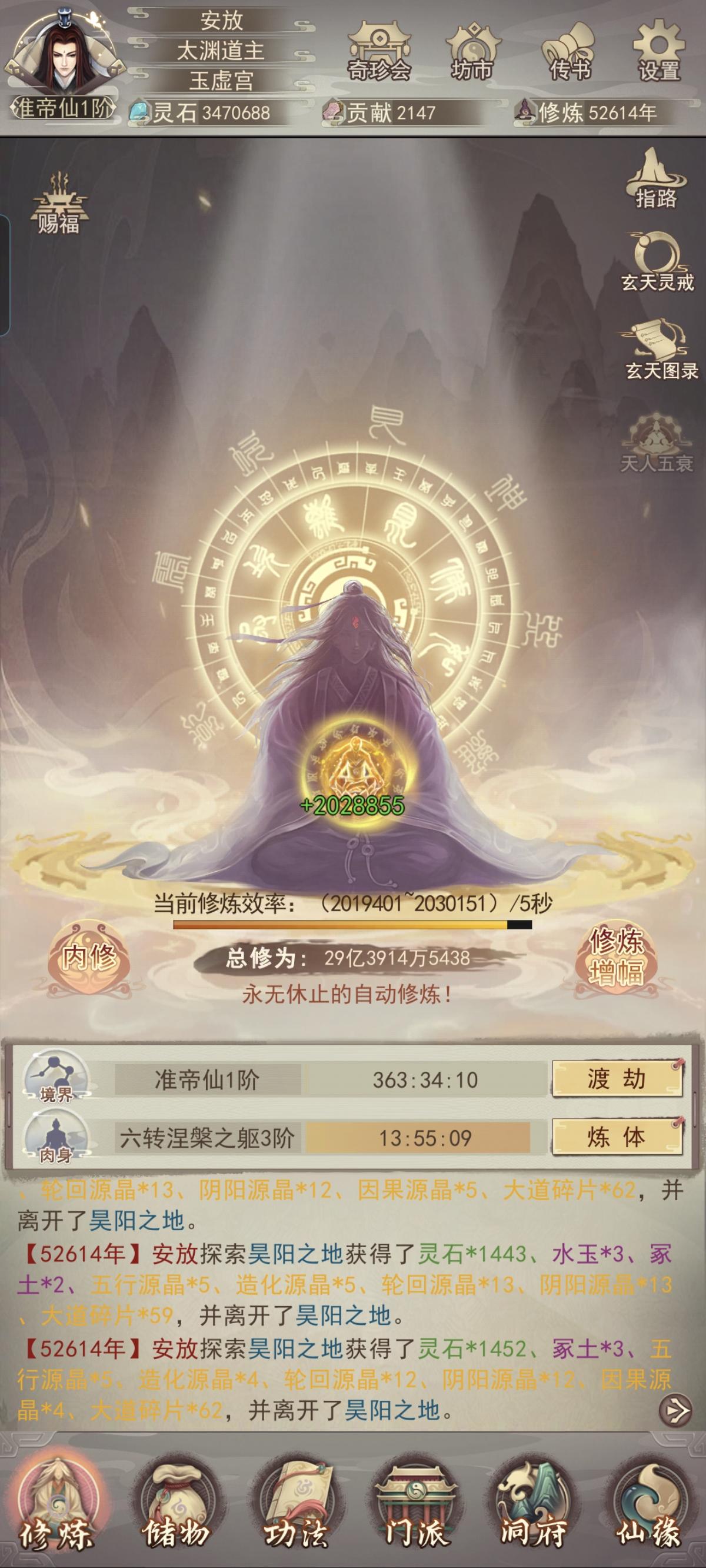 1.进入条件天渊入口位于九天十地最下方区域,更新后达到准帝仙境界即可无条件进入,这次终于没有守门员了。进入后即可获得混天鼎以及初始属性,以及鬼佬送的可以开十次炉子炼丹的大道之源。2.混天鼎混天鼎可以炼制元丹,元丹分为三种,分别对应增加攻击,防御,血量。元丹炼制需要大道之源,大道之源通过探索天渊(走格子)以及占领上古道境获取3.混天珠天渊宝库中可以获取混天珠,探索天渊获得天渊晶兑换最多五颗