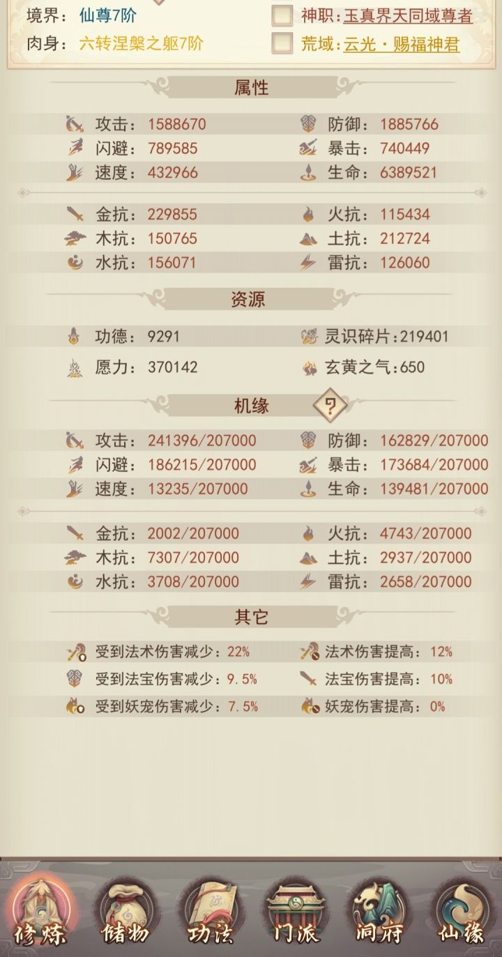 修真无岁月,转眼又万年。不知不觉中修真已有83883年了,练习时长也有两年半了。作为一个零氪,能坚持到现在除了群友的陪伴之外,就是想看看自己能否熬到帝仙,届时属性又如何?没想到最终竟实现了。在此记录一下自己的修仙历程。0年,练气4年,筑基11年,金丹73年,元婴350年,出窍819年,分神1271年,合体2102年,洞虚3218年,大乘4470年,洞真6001年,散仙8