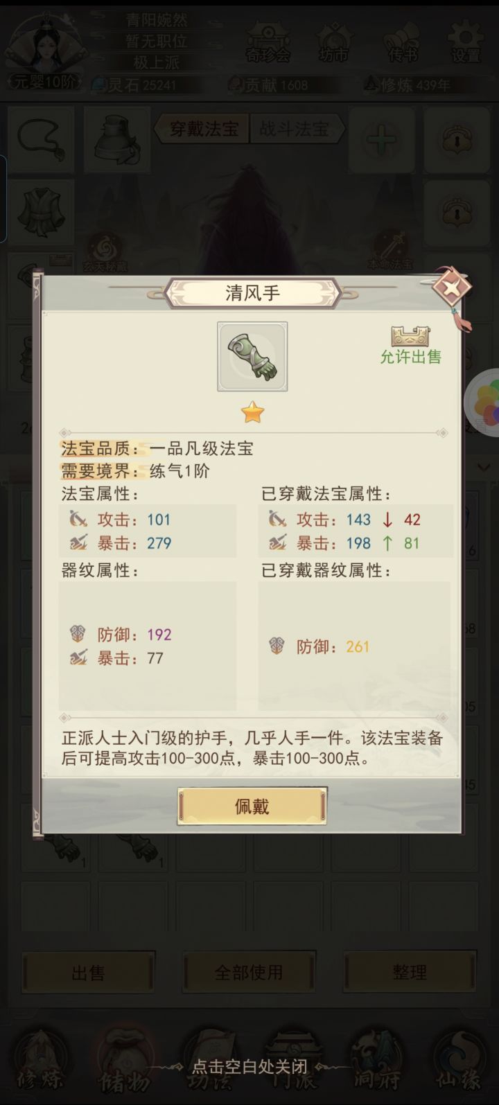 1、修速高于一切,在基本过图的情况请尽量拉修速,境界上去了才能吃饼。(能强度就强度不要像我满度)2、仙门的阵法请学全(我就没学全,前天才知道这个弯路)五行聚灵不是让你转换零食的,是要你运转的阵法加属性的。3、装备请先在凡人 2 刷出金防,后面可以不管锁防御刷紫色攻击用着就行,戒指也是金防就不管了。所有装备在仙 7 开 5 词条开始洗炼,攻防+三抗,戒指也是。装备升级顺序头、衣、裤三个平均优先级