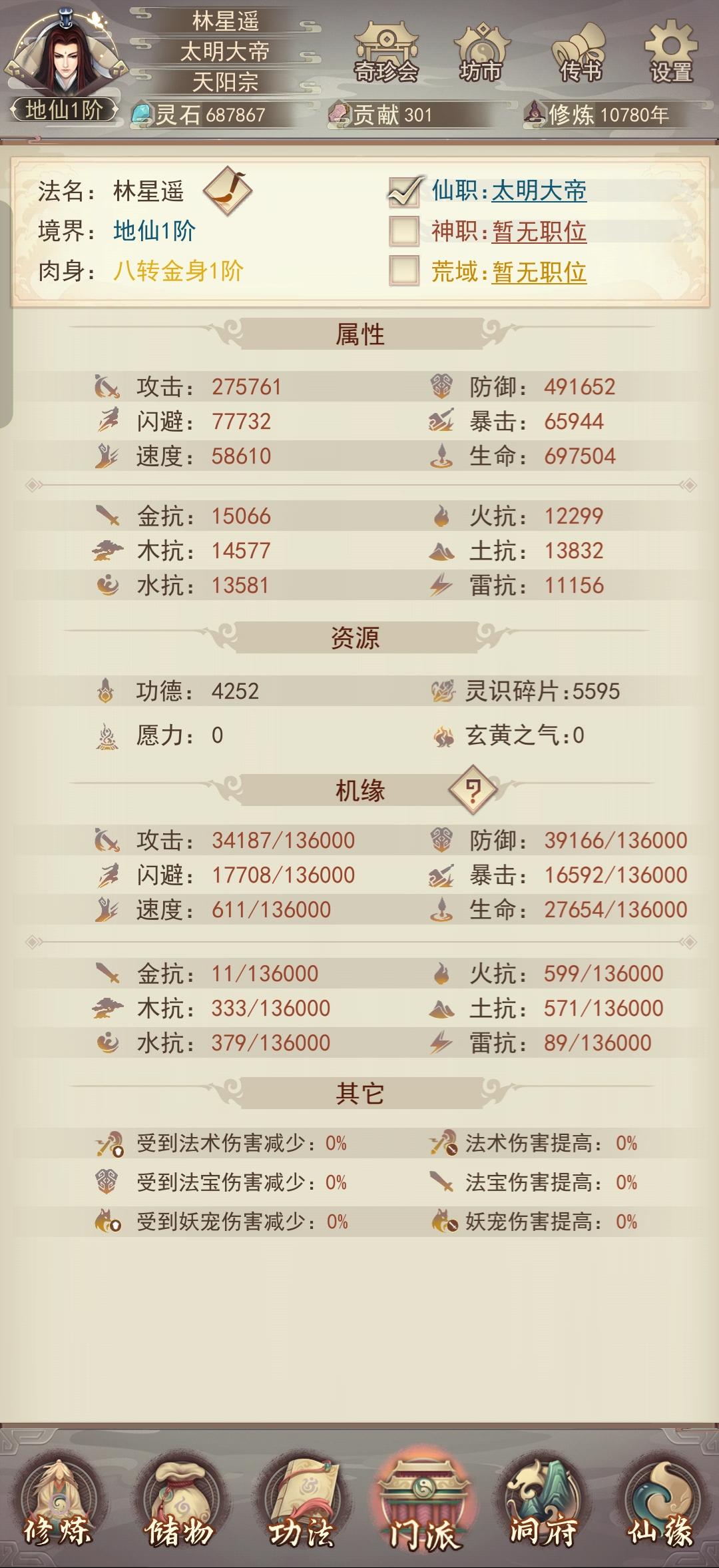 1、修速高于一切,在基本过图的情况请尽量拉修速,境界上去了才能吃饼。(能强度就强度不要像我满度)2、仙门的阵法请学全(我就没学全,前天才知道这个弯路)五行聚灵不是让你转换零食的,是要你运转的阵法加属性的。3、装备请先在凡人 2 刷出金防,后面可以不管锁防御刷紫色攻击用着就行,戒指也是金防就不管了。所有装备在仙 7 开 5 词条开始洗炼,攻防+三抗,戒指也是。装备升级顺序头、衣、裤三个平均优先级