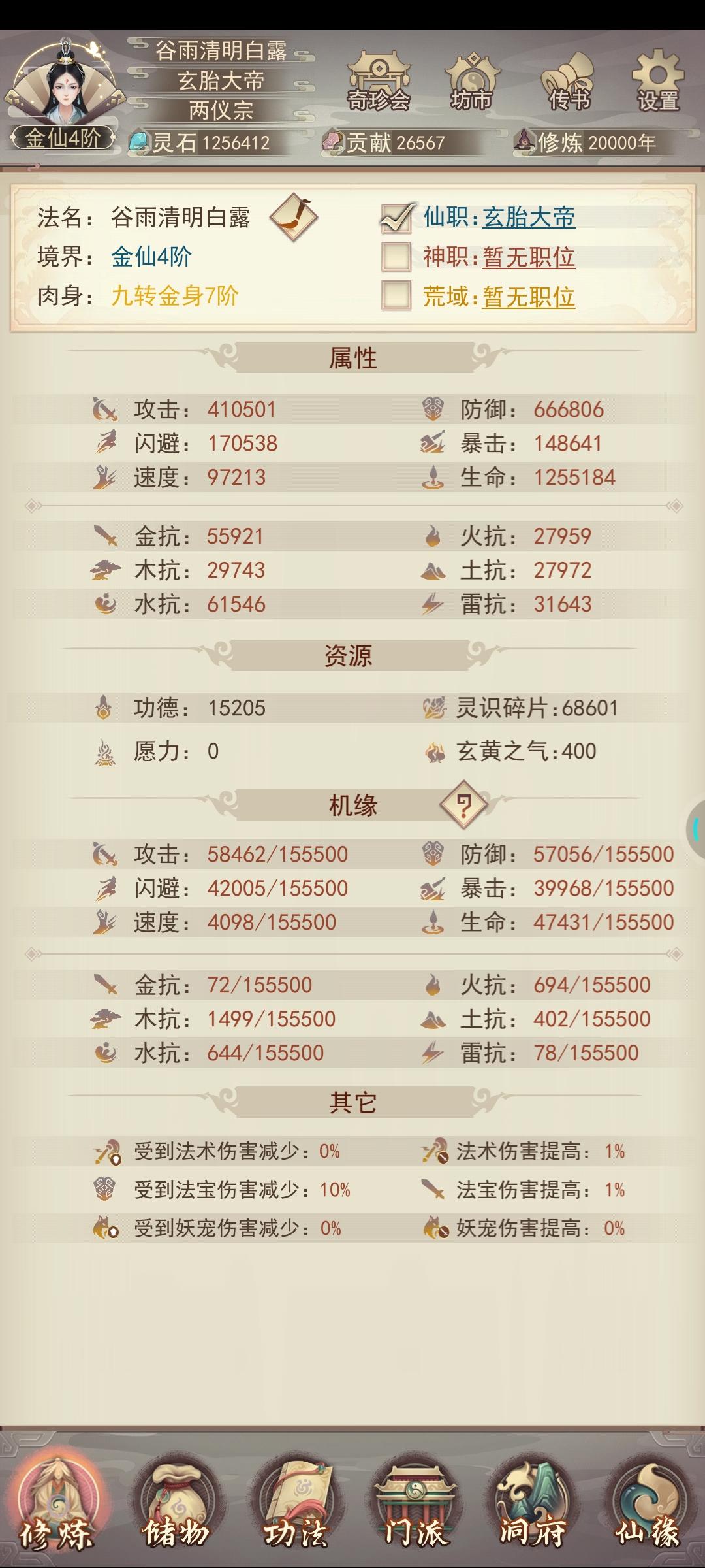 终于万年内成就大罗;遗憾的是金仙9升10劈太多次了,如果少劈一次,也能在9000年前升大罗。感谢133紫曜界大佬们平常的解惑(特别感谢醉酒大帝)和论坛上所有大神发布的详细攻略,让我少走不少弯路。 天命坛是个结,我花了12组多的火髓,才洗出最后一张图的数据,所以需要刷几率的别上头附年份:2年:筑基5年:金丹22年:元婴96年:出窍284年:分神613年:合体1069年:洞虚16