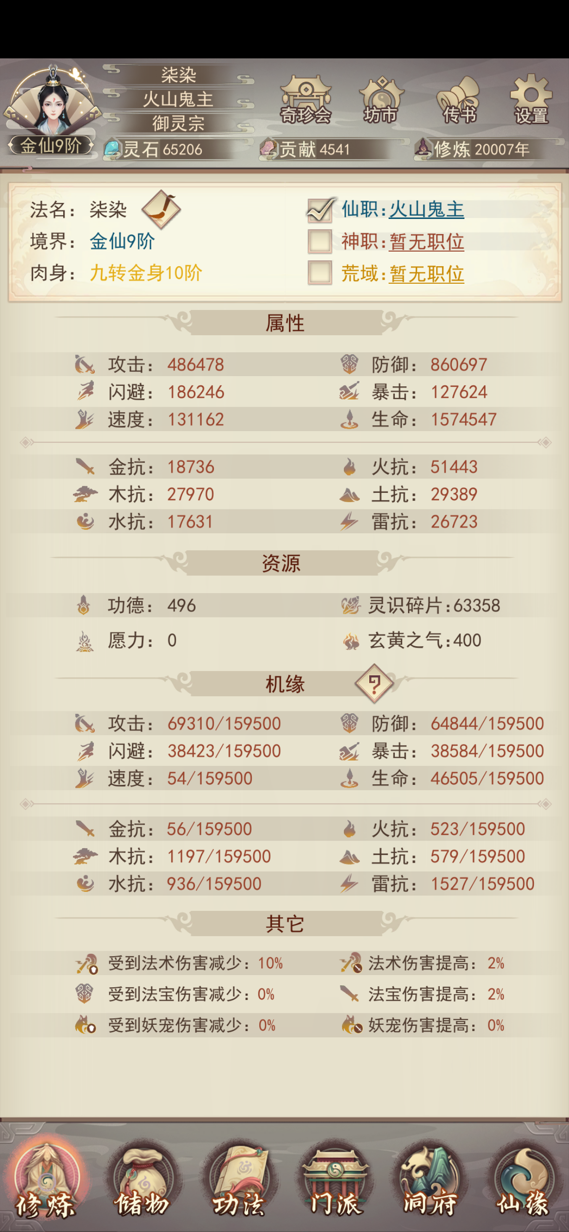 浑浑噩噩两万载,走了不少弯路,多亏了群里各位大佬帮忙也不算太差,唯一的遗憾就是终究没能突破大罗。仙宗的法术是真恶心啊,刚上天没多久就差两本,快大罗了还差两本。