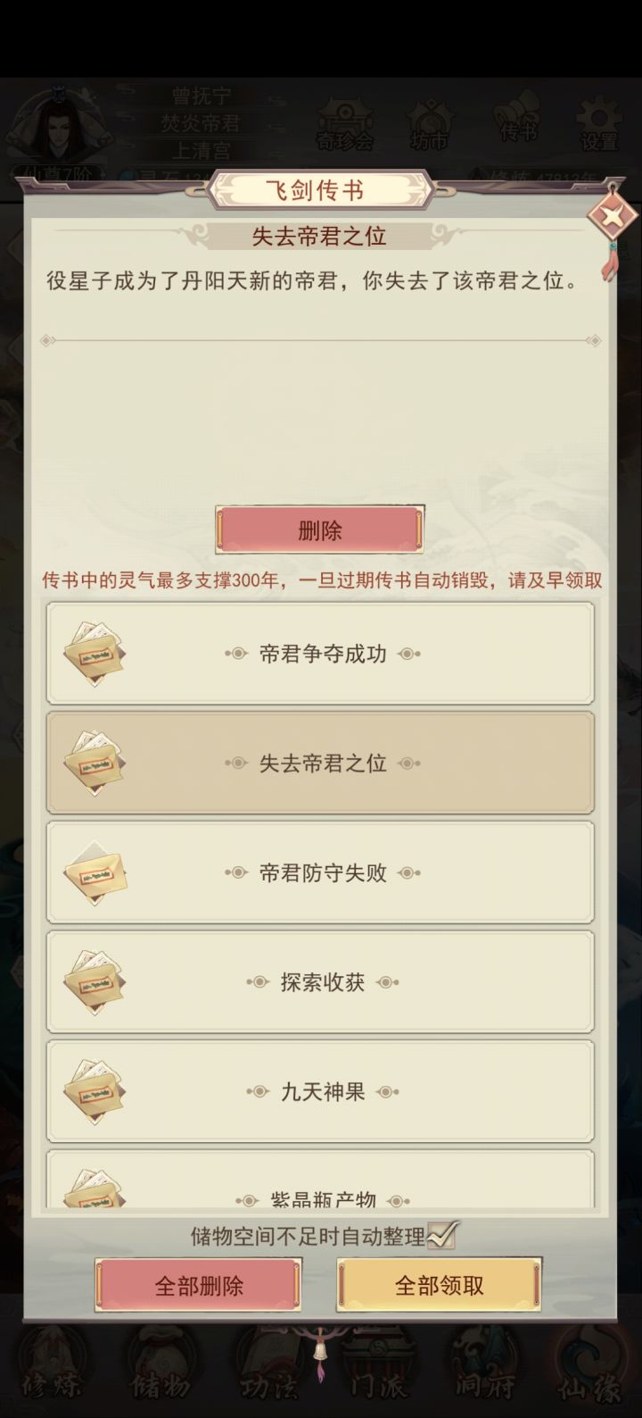 终于万年内成就大罗;遗憾的是金仙9升10劈太多次了,如果少劈一次,也能在9000年前升大罗。感谢133紫曜界大佬们平常的解惑(特别感谢醉酒大帝)和论坛上所有大神发布的详细攻略,让我少走不少弯路。 天命坛是个结,我花了12组多的火髓,才洗出最后一张图的数据,所以需要刷几率的别上头附年份:2年:筑基5年:金丹22年:元婴96年:出窍284年:分神613年:合体1069年:洞虚16