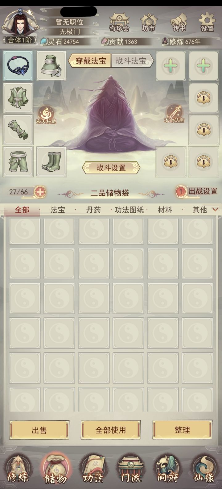 本攻略整理各阶段宗门的毕业条件,方便有跳宗需求的道友提前规划贡献与资源分配凡宗毕业:凡宗掌门丹【三玄丹】全部吃满(共5颗)【丹方】凡1~凡4品全部学会【器方】凡1~凡4品全部学会【试炼塔】通关凡间【法术】全部收集(图鉴收集党可追求,实战用不上)凡宗毕业后续完成以上内容后,剩余宗门贡献建议优先兑换【矿石】(如玄星石),用于加速装备升品。仙宗毕业:【丹方】凡5~凡9品全部学会【器