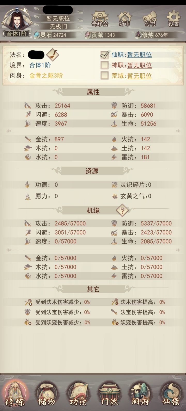 终于万年内成就大罗;遗憾的是金仙9升10劈太多次了,如果少劈一次,也能在9000年前升大罗。感谢133紫曜界大佬们平常的解惑(特别感谢醉酒大帝)和论坛上所有大神发布的详细攻略,让我少走不少弯路。 天命坛是个结,我花了12组多的火髓,才洗出最后一张图的数据,所以需要刷几率的别上头附年份:2年:筑基5年:金丹22年:元婴96年:出窍284年:分神613年:合体1069年:洞虚16
