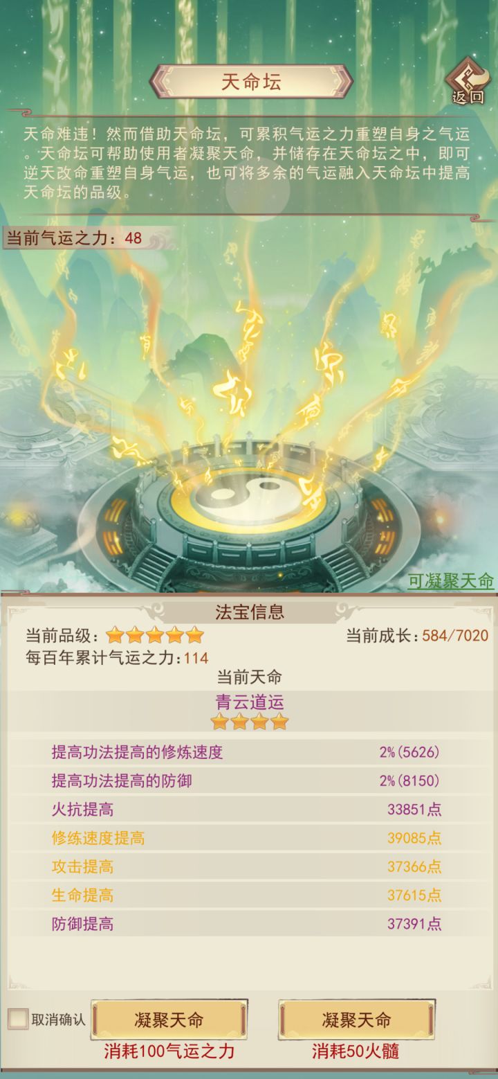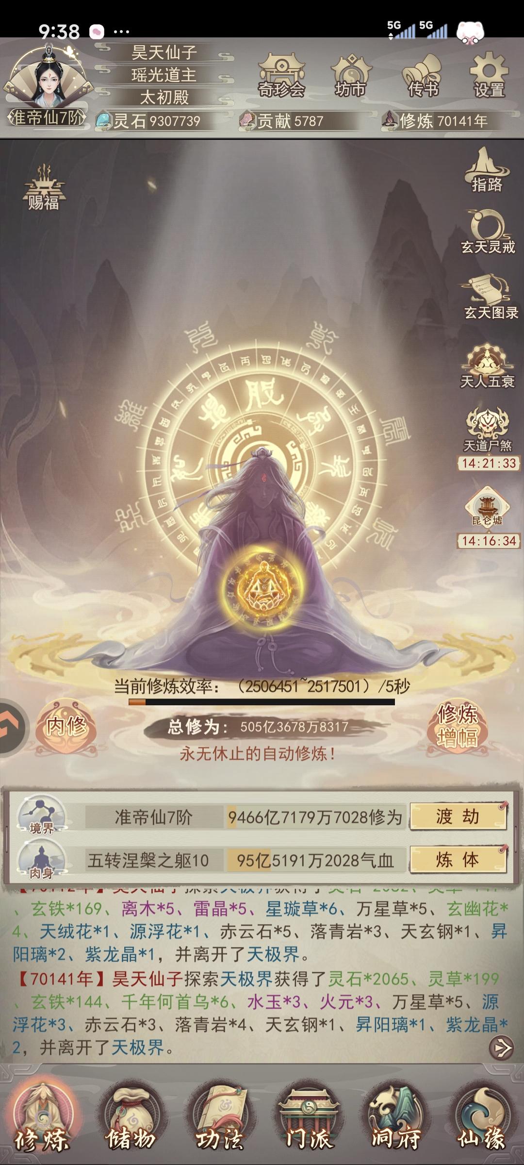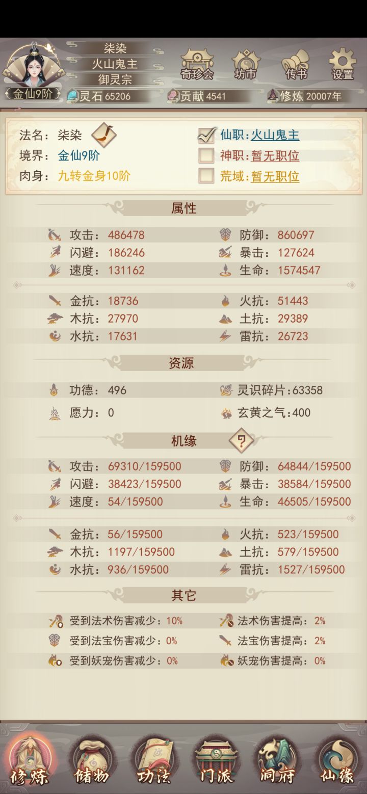 终于万年内成就大罗;遗憾的是金仙9升10劈太多次了,如果少劈一次,也能在9000年前升大罗。感谢133紫曜界大佬们平常的解惑(特别感谢醉酒大帝)和论坛上所有大神发布的详细攻略,让我少走不少弯路。 天命坛是个结,我花了12组多的火髓,才洗出最后一张图的数据,所以需要刷几率的别上头附年份:2年:筑基5年:金丹22年:元婴96年:出窍284年:分神613年:合体1069年:洞虚16