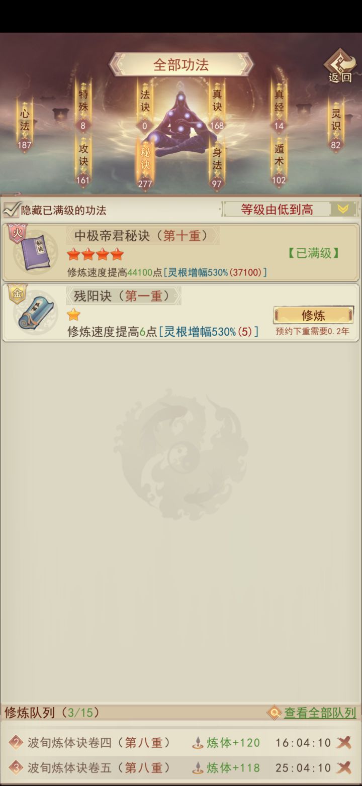 终于万年内成就大罗;遗憾的是金仙9升10劈太多次了,如果少劈一次,也能在9000年前升大罗。感谢133紫曜界大佬们平常的解惑(特别感谢醉酒大帝)和论坛上所有大神发布的详细攻略,让我少走不少弯路。 天命坛是个结,我花了12组多的火髓,才洗出最后一张图的数据,所以需要刷几率的别上头附年份:2年:筑基5年:金丹22年:元婴96年:出窍284年:分神613年:合体1069年:洞虚16