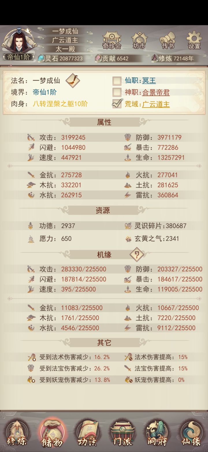 73158年份,222修速(图上230是吃了秘境)86876年份,300修速137天,拉了78万修速平均一天拉5700很容易让人忽略,能拉开大差距的修速大点是:神功!每个星级第一本的左上角、第三本的中间(性价比很低)都是大修速目前游戏更新速度远跟不上属性成长,出的新玩法也基本上是卡进度而不是属性要属性?还是修速?诸位见仁见智#凡人传说 #凡人传说属性#凡人传说攻略