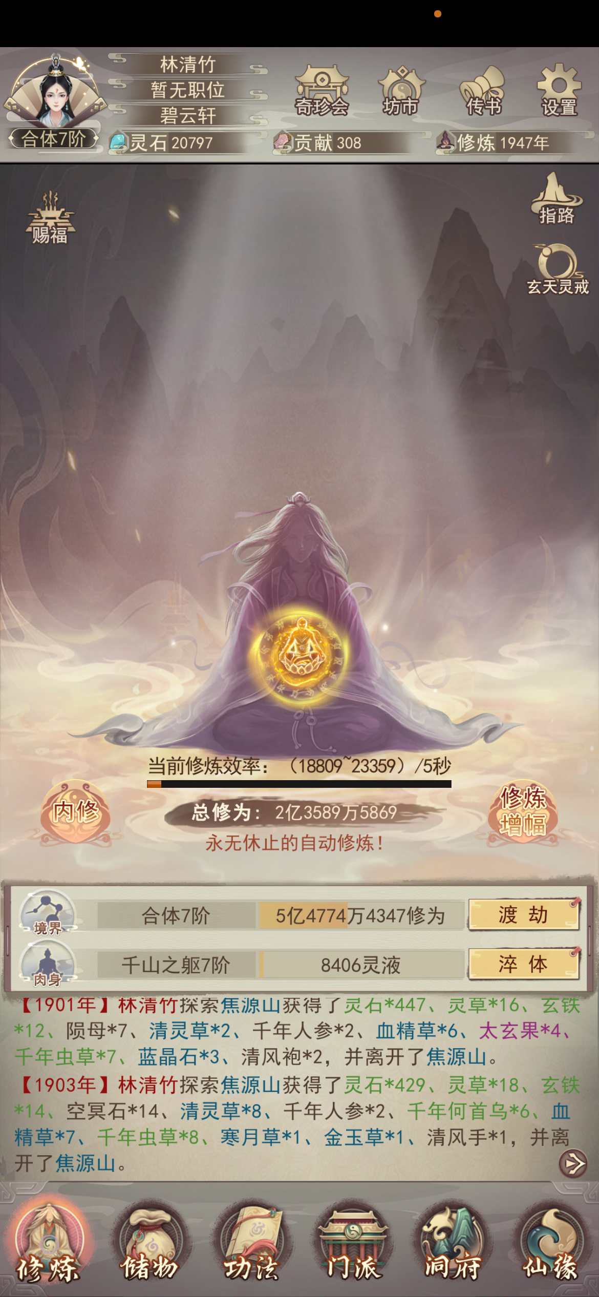 无数日夜,半年多的坚持,每日0点准时开启修仙,终于在今天仙尊,过门,开启荒域!痛苦的是第一天歪了太多,比之前所有加起来还要歪还是不够努力,修仙就是坚持不懈!下个一万年,我们仍在一起,与众道友共勉之!!!