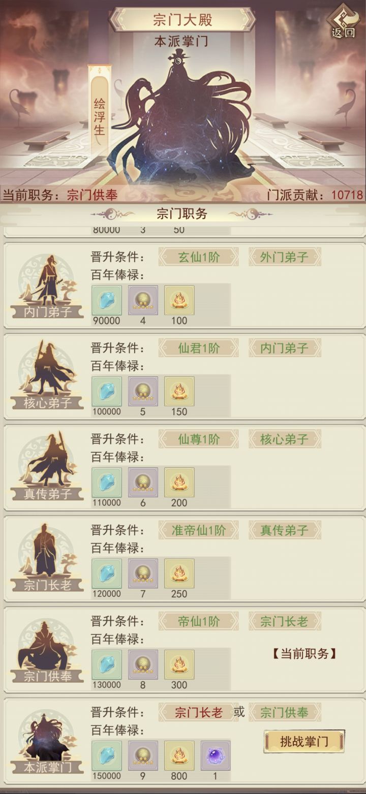 本攻略整理各阶段宗门的毕业条件,方便有跳宗需求的道友提前规划贡献与资源分配凡宗毕业:凡宗掌门丹【三玄丹】全部吃满(共5颗)【丹方】凡1~凡4品全部学会【器方】凡1~凡4品全部学会【试炼塔】通关凡间【法术】全部收集(图鉴收集党可追求,实战用不上)凡宗毕业后续完成以上内容后,剩余宗门贡献建议优先兑换【矿石】(如玄星石),用于加速装备升品。仙宗毕业:【丹方】凡5~凡9品全部学会【器