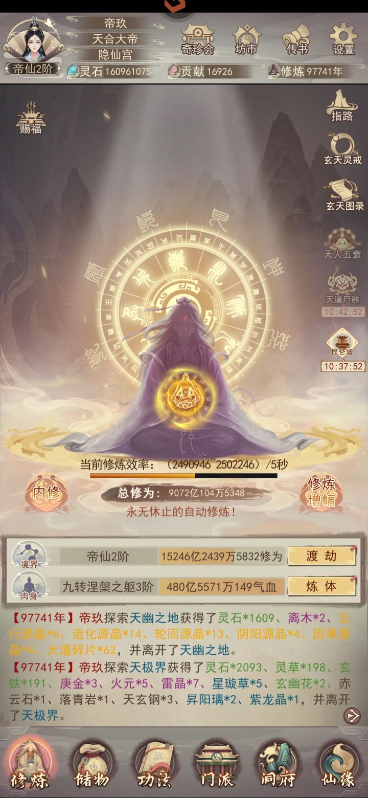 本攻略整理各阶段宗门的毕业条件,方便有跳宗需求的道友提前规划贡献与资源分配凡宗毕业:凡宗掌门丹【三玄丹】全部吃满(共5颗)【丹方】凡1~凡4品全部学会【器方】凡1~凡4品全部学会【试炼塔】通关凡间【法术】全部收集(图鉴收集党可追求,实战用不上)凡宗毕业后续完成以上内容后,剩余宗门贡献建议优先兑换【矿石】(如玄星石),用于加速装备升品。仙宗毕业:【丹方】凡5~凡9品全部学会【器