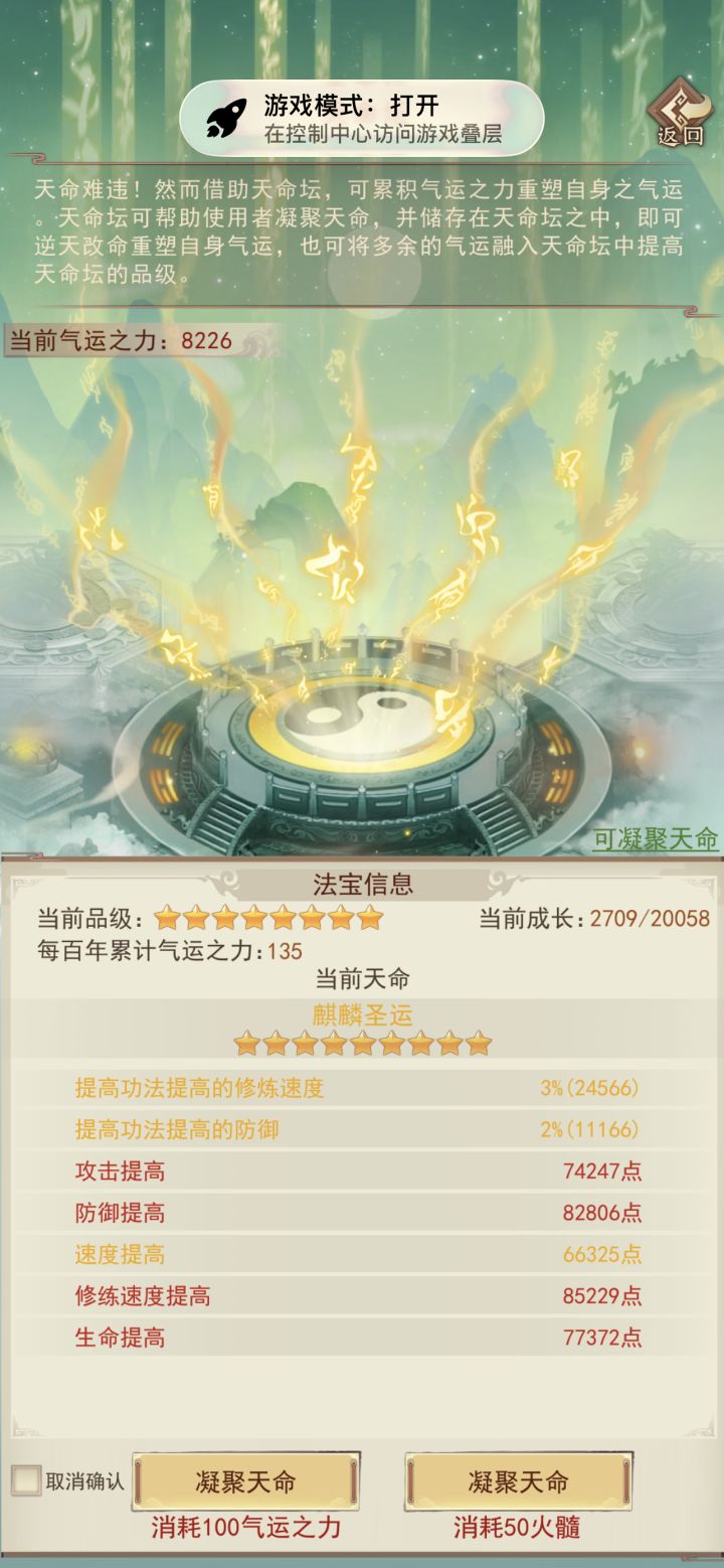终于万年内成就大罗;遗憾的是金仙9升10劈太多次了,如果少劈一次,也能在9000年前升大罗。感谢133紫曜界大佬们平常的解惑(特别感谢醉酒大帝)和论坛上所有大神发布的详细攻略,让我少走不少弯路。 天命坛是个结,我花了12组多的火髓,才洗出最后一张图的数据,所以需要刷几率的别上头附年份:2年:筑基5年:金丹22年:元婴96年:出窍284年:分神613年:合体1069年:洞虚16