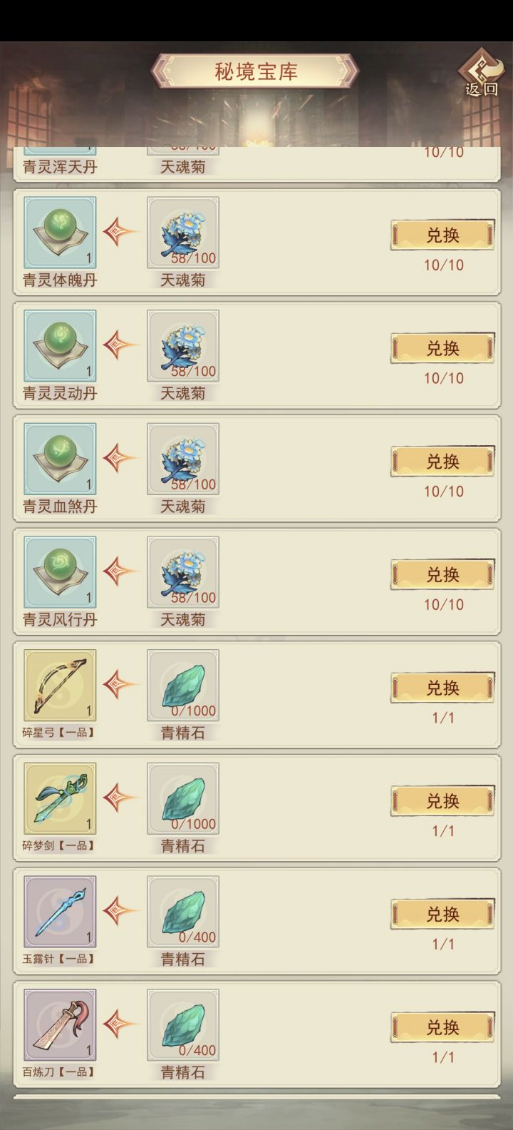 秘境探索里 各种次一些的灵核、药草、矿石等不太需要的每次都要手点出售,有点难甭,关键买了也才一点灵石#凡人传说
