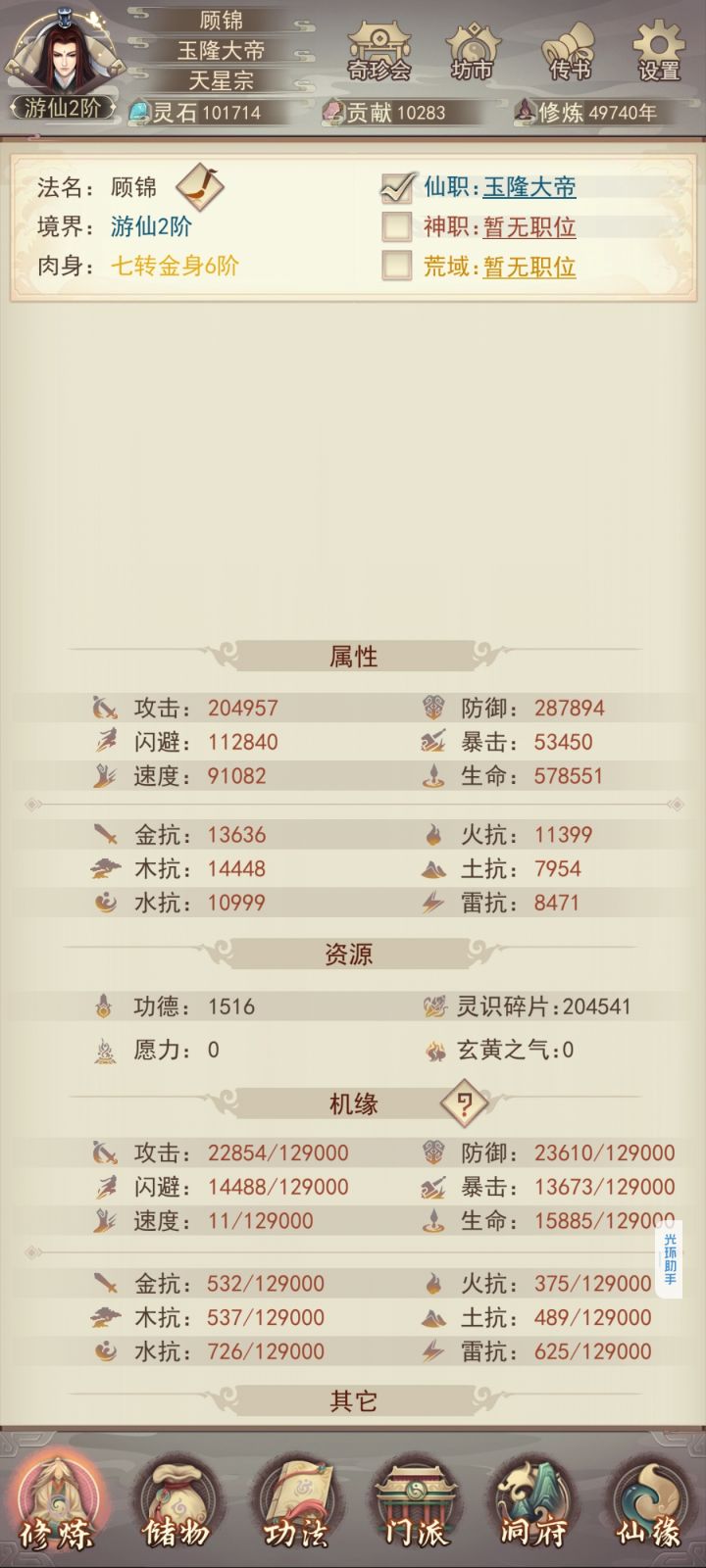 终于万年内成就大罗;遗憾的是金仙9升10劈太多次了,如果少劈一次,也能在9000年前升大罗。感谢133紫曜界大佬们平常的解惑(特别感谢醉酒大帝)和论坛上所有大神发布的详细攻略,让我少走不少弯路。 天命坛是个结,我花了12组多的火髓,才洗出最后一张图的数据,所以需要刷几率的别上头附年份:2年:筑基5年:金丹22年:元婴96年:出窍284年:分神613年:合体1069年:洞虚16