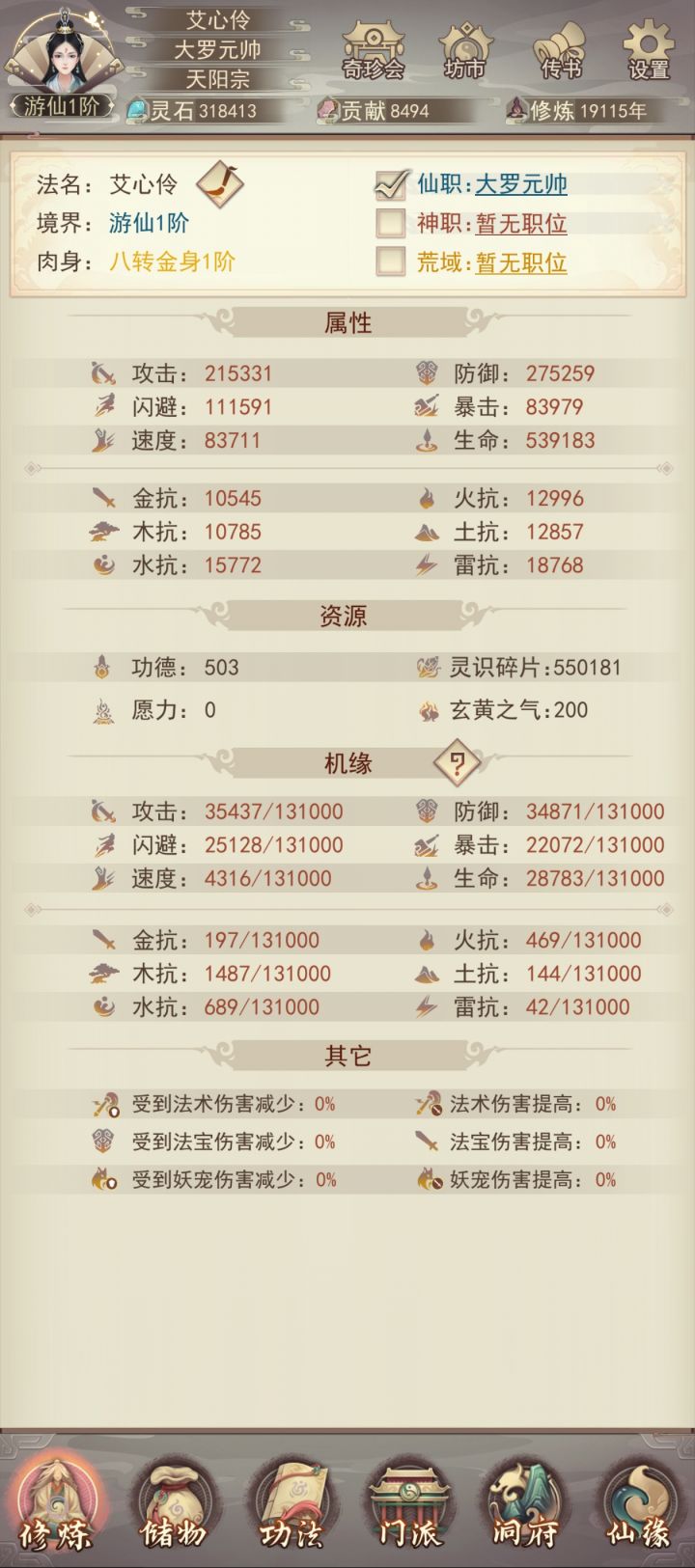 修真无岁月,转眼又万年。不知不觉中修真已有83883年了,练习时长也有两年半了。作为一个零氪,能坚持到现在除了群友的陪伴之外,就是想看看自己能否熬到帝仙,届时属性又如何?没想到最终竟实现了。在此记录一下自己的修仙历程。0年,练气4年,筑基11年,金丹73年,元婴350年,出窍819年,分神1271年,合体2102年,洞虚3218年,大乘4470年,洞真6001年,散仙8