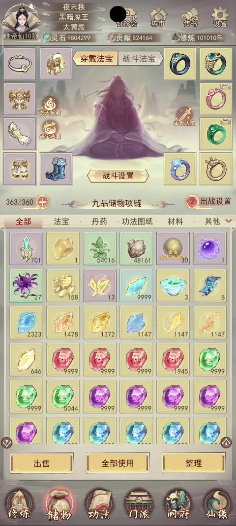 修真无岁月,转眼又万年。不知不觉中修真已有83883年了,练习时长也有两年半了。作为一个零氪,能坚持到现在除了群友的陪伴之外,就是想看看自己能否熬到帝仙,届时属性又如何?没想到最终竟实现了。在此记录一下自己的修仙历程。0年,练气4年,筑基11年,金丹73年,元婴350年,出窍819年,分神1271年,合体2102年,洞虚3218年,大乘4470年,洞真6001年,散仙8