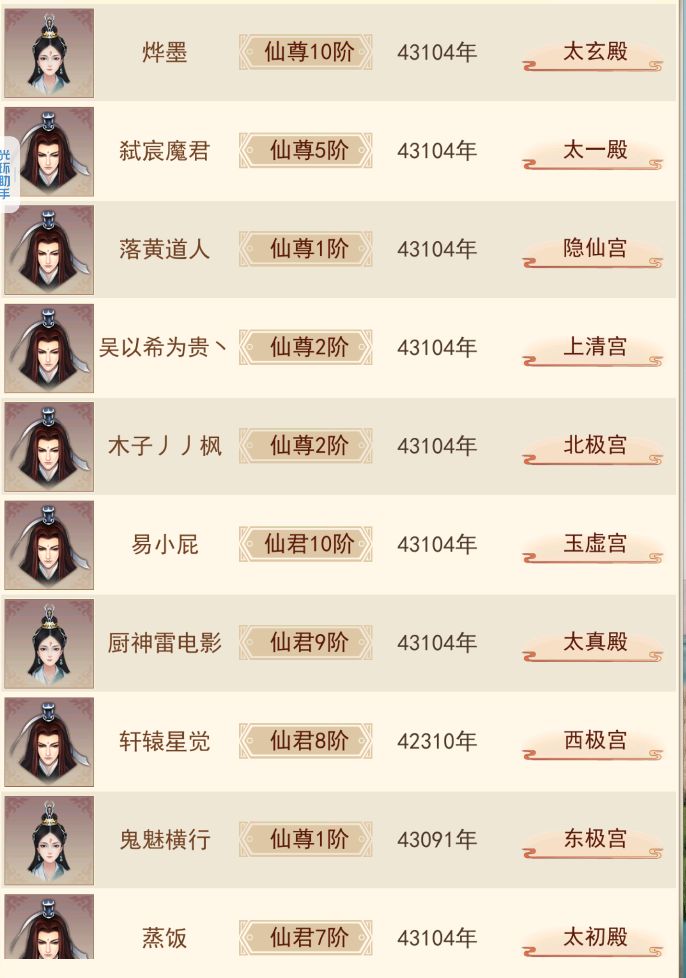 修真无岁月,转眼又万年。不知不觉中修真已有83883年了,练习时长也有两年半了。作为一个零氪,能坚持到现在除了群友的陪伴之外,就是想看看自己能否熬到帝仙,届时属性又如何?没想到最终竟实现了。在此记录一下自己的修仙历程。0年,练气4年,筑基11年,金丹73年,元婴350年,出窍819年,分神1271年,合体2102年,洞虚3218年,大乘4470年,洞真6001年,散仙8