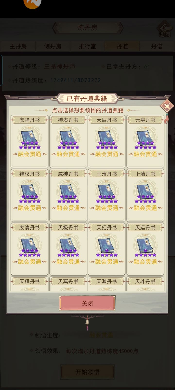 修真无岁月,转眼又万年。不知不觉中修真已有83883年了,练习时长也有两年半了。作为一个零氪,能坚持到现在除了群友的陪伴之外,就是想看看自己能否熬到帝仙,届时属性又如何?没想到最终竟实现了。在此记录一下自己的修仙历程。0年,练气4年,筑基11年,金丹73年,元婴350年,出窍819年,分神1271年,合体2102年,洞虚3218年,大乘4470年,洞真6001年,散仙8