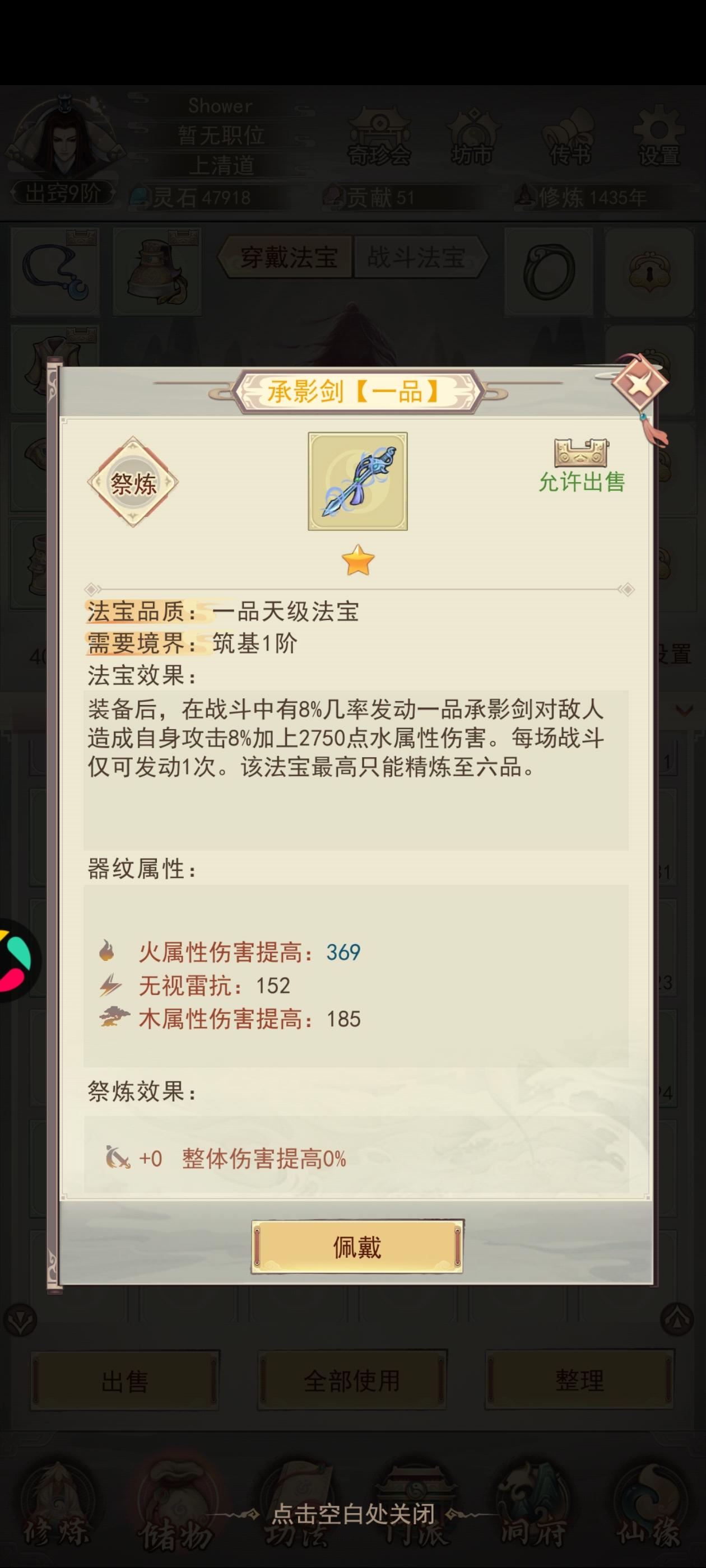 目前得到的都是蓝色和紫色武器,今天竟然从储物袋里开出个金色武器