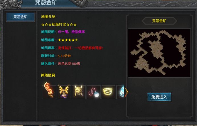 规则说明 1、游戏爆率极高,只需要挂机打宝就能收集全套法宝和获得各类养成材料,没有杂乱繁琐的任务。 2、提升人物等级,可进入更高级的打宝地图,掉落更高级装备!#攻略