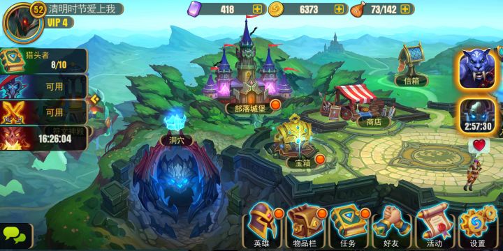 游戏特色:①宝箱抽英雄和英雄碎片的概率很高,而且完全可以存金币来抽木头宝箱,只要每天收矿洞、打公会副本,基本能保证200抽,到50级至少能得到两个及以上的五星英雄,一大堆的四星英雄,很有养成的成就感(注意:抽到的所有英雄都是一星,完全可以靠攒碎片来升星)②基础英雄强度很高,基础英雄就是指能通过金币抽木头宝箱得到的英雄,一点都不比花钻石抽贵重宝箱的英雄强度低 ③金币很容易获得,每天收矿洞打公会副