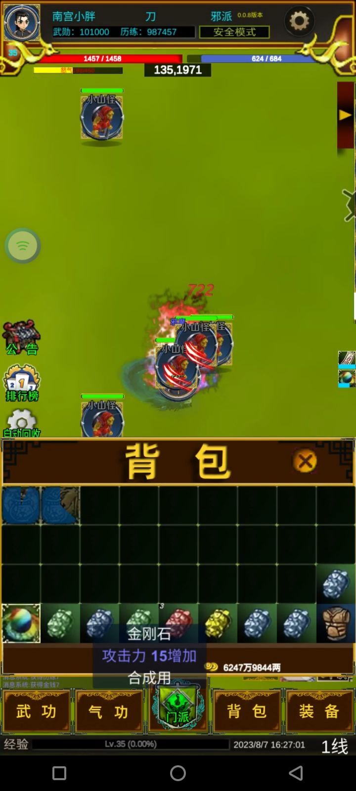 首先在这里声明以下内容1.游戏不投入什么都能爆,但是你非得跟买了38的金符去比,这不对的2.武勋7个阶段。不是说必须弄到7阶段。根据自己的需求去弄,青春宝盒也出武勋丹,没有必须赞助这一说,没有必须3.辅助不是必须,不是必须,游戏自带自动挂机,回收,拾取,回血,