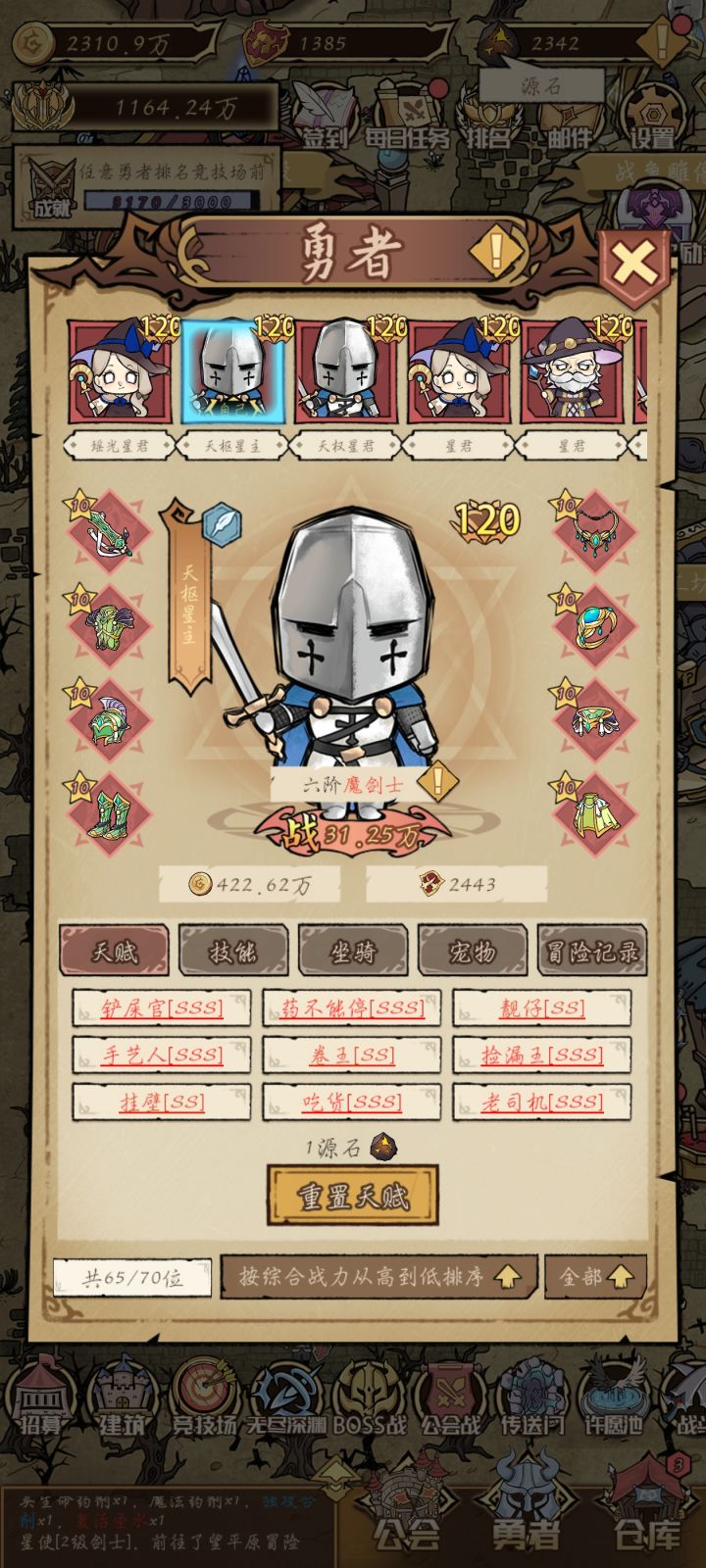 我尽可能写的简洁,括号里面的是解释,如果新人刚入坑看不懂,可以等玩一段时间再回来看。(你会发现一切看不懂都是玩的少了)下面是刷战力的攻略,如果你要刷成就就算了。1、建筑只解锁药剂馆和酒馆并升满,宠物\装备\技能\许愿四个建筑物碰都不要碰,想买就剁手,除非你刷声望或成就。战争雕像不用全升,选几个职业升满,新招募的人物可以只从你升满的职业里面选,其他的拒绝或当炮灰。传送门前期不动,后期有10