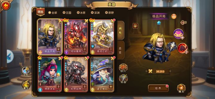 基础攻略大盘点本游分为4大种族,种族除了有上阵的阵盘属性还有种族内部的羁绊加强,所以到后期基本都是单种族战队,不会是混搭。并且本游SSS以下都是狗粮,重生所花费资源并不多,新手可以看看大佬的搭配,到中期(一两个月)再根据手里的资源决定走哪个种族。然后到了大后期基本阵容固定,战力的差别全在培养上。这里简单说一下各族的各阶段C位供大家参考。王国:前期C位,SS烈焰女巫,全体伤害,连击2次的概率极高