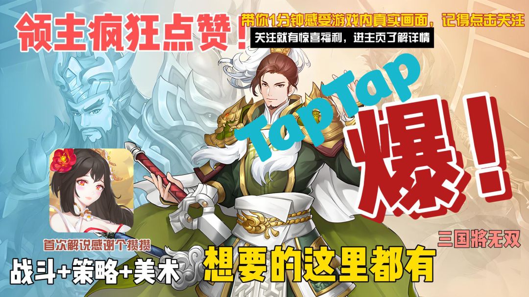 ##游戏种草计划 💥《三国将无双》,超棒的三国题材动作卡牌战术手游来啦😜! 在天命的感召下重回传奇年代🎉,100+名将无限制无差别登场,卡池爆率超高,爽快收集不是梦👏!丰富养成线助力战力全面升级💪,武将强化、神兵觉醒、宠物培养,一个都不能少😎! 💥劲爆合击技,缘分加成等羁绊设定,超有趣😄!高智能 BOSS 战,多层次操作快感等你来体验🧐,红圈预警、目标集火、施法打断等高策略强动作要素,简直太刺激啦