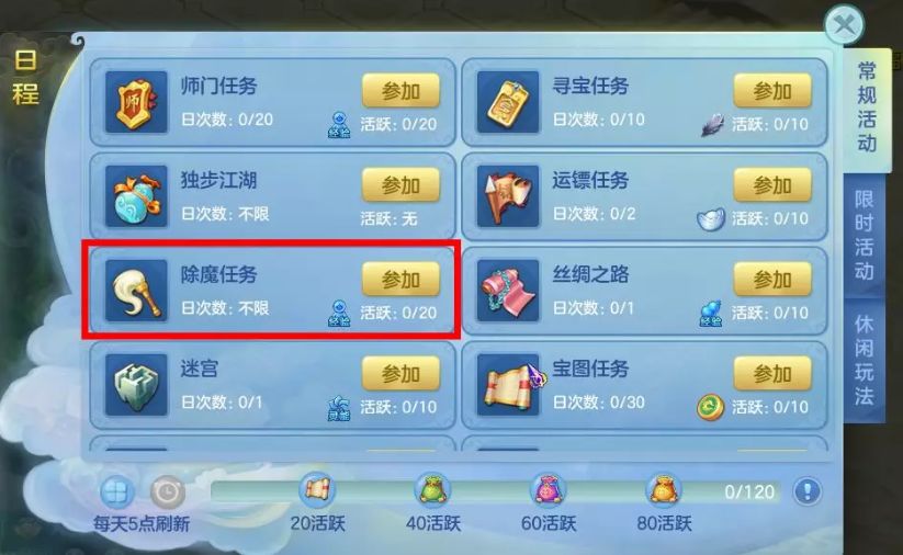 梦想大陆每天都有许多新面孔 热烈欢迎初来乍到的新玩家 小爱特意为你们准备了 日常活动技巧大全 成为大神的路上 首先得掌握日常必备技巧 日常活动技巧 日常活动是我们每天都要接触的任务,这些任务可以给予我们经验、银两、物品、梦想币、积分等收益。由于游戏中的任务琳琅满目,一些任务经验丰富奖励可观,一些任务玩法有趣操作简单,接下来为大家介绍一下这些活动都有哪些奖励和技巧。小伙伴在熟悉活动之后就能更加自如的