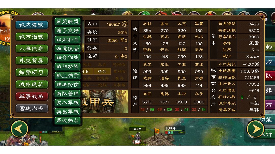最近复习了下靖康耻😡,了解了大宋赵官家的昏庸荒诞事迹,带着恨铁不成钢的心情开启了靖康耻剧本,从被金国毒打到逐渐收复河北,灭亡小日子不错的日本子(带点民族情绪)而后收大理,灭吐蕃,亡西夏,稳定后方之后积蓄力量,北伐金国直捣黄龙府,最后踏平辽国,一统天下:(忘了个高句丽,顺道灭的)在整个剧本中只剩余我一家势力的时候,突然感觉一阵空虚😩于是开始了我的种田基建之旅 整个剧本玩下来后也是想给其他玩家一些建议,做一个记录,只代表个人看法,欢迎补充 1关于开局:这里强烈建议开始全部势力同盟三年的选项,不然开局敌方武将无视功勋以及资源,直接发四五支五六万的部队打你(还是弩炮兵,铁浮屠这种部队)实在是顶不住,后续等己方的武将功勋上来之后,再解盟开战吧 字数限制,评论区补充🙁
