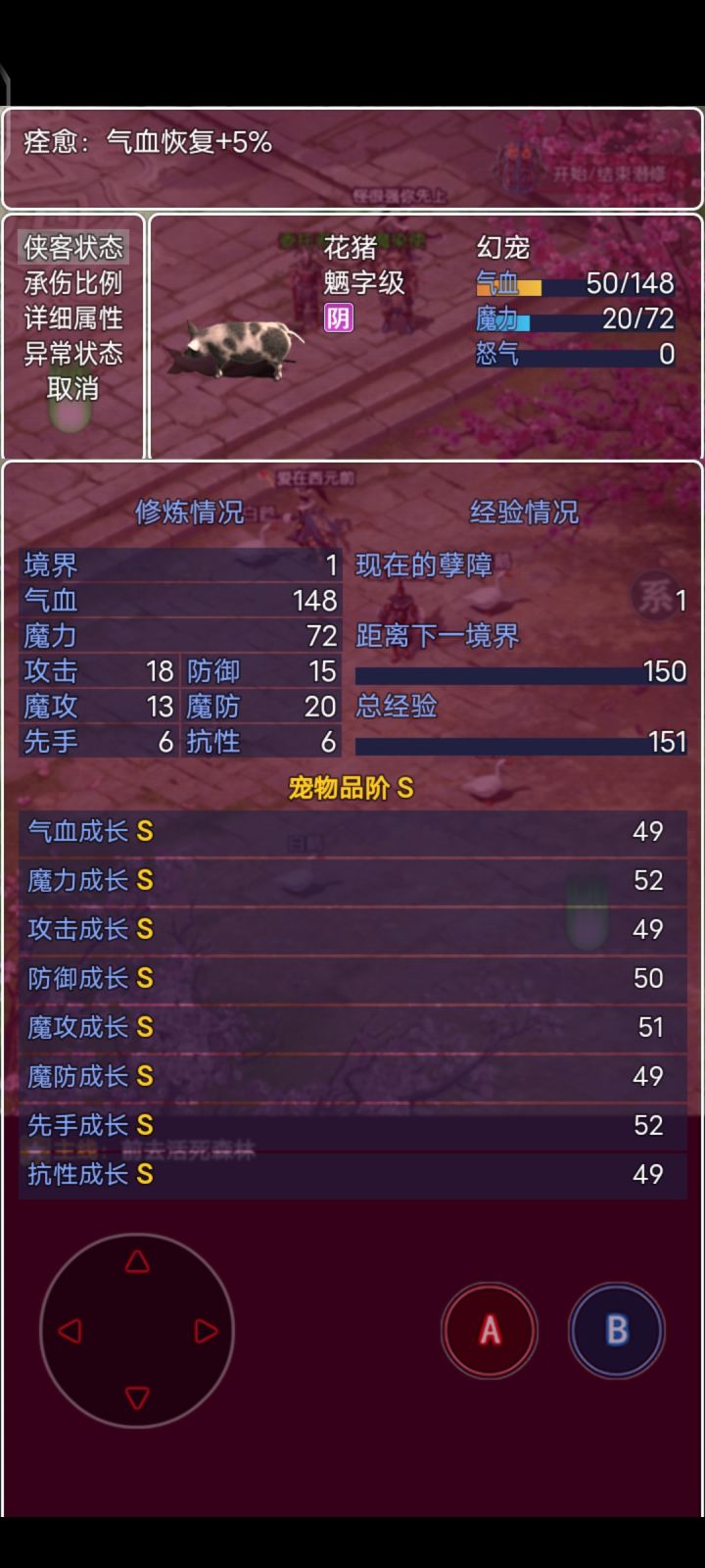 建议加群玩网络版 ,更新的比单机快多了 , 上来猪跟狼都可以,也不要去刷什么s,没必要 后面要换的,宠物打怪不升级,死亡后只能回城找冷逍遥,宠物升级需要人参果人参果获取途径:普通宠物回收给1个,boss宠物回收给5个部分委托人任务20%概率给1个宠物装备在怡红院(黄级幻境,只掉宠物装备)里打(难度较高,推荐魔防90-100左右去打)宠物技能书在无佛地(黄级幻境,掉落一二级强化石和一级