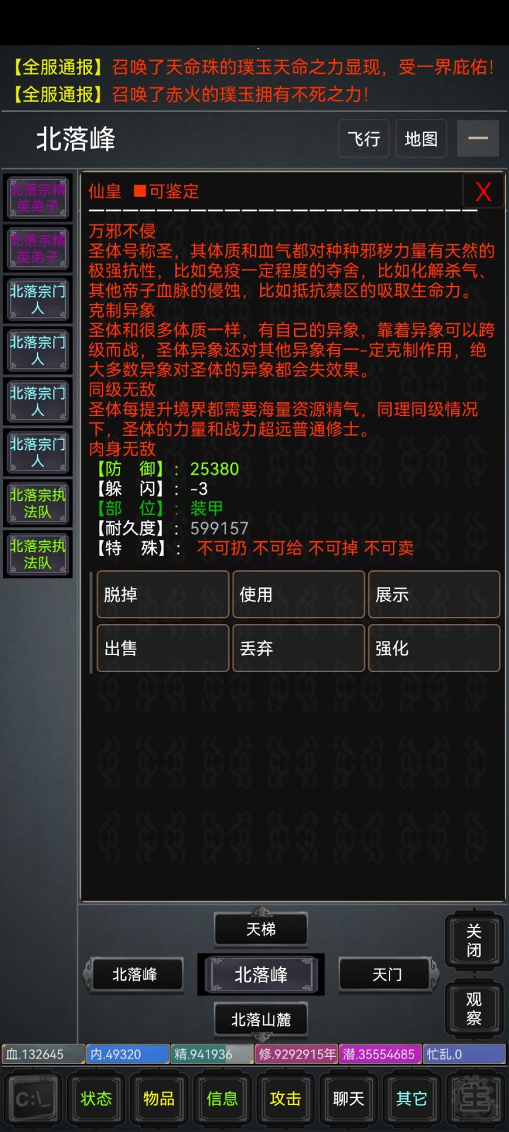 有人要玩吗?很好玩的夺宝服,新人玩家进游戏就有礼包领,领完礼包去到长安客栈拜NBC为师学习技能就能去打元宝童子了,对了元宝童子是新人福利打了能掉元宝哦。本游戏最进还更新出了聂人王和仙火麒麟,聂人王击杀有几率掉落血饮刀法和武器雪饮狂刀,血饮刀法和雪饮狂刀相当于低配定制,伤害可观。仙火麒麟则是能掉落麒麟骨、麒麟皮、麒麟血和血菩提,血菩提使用能增加先天,和九转仙丹一样。游戏中进行转世有转世装备领取,先别