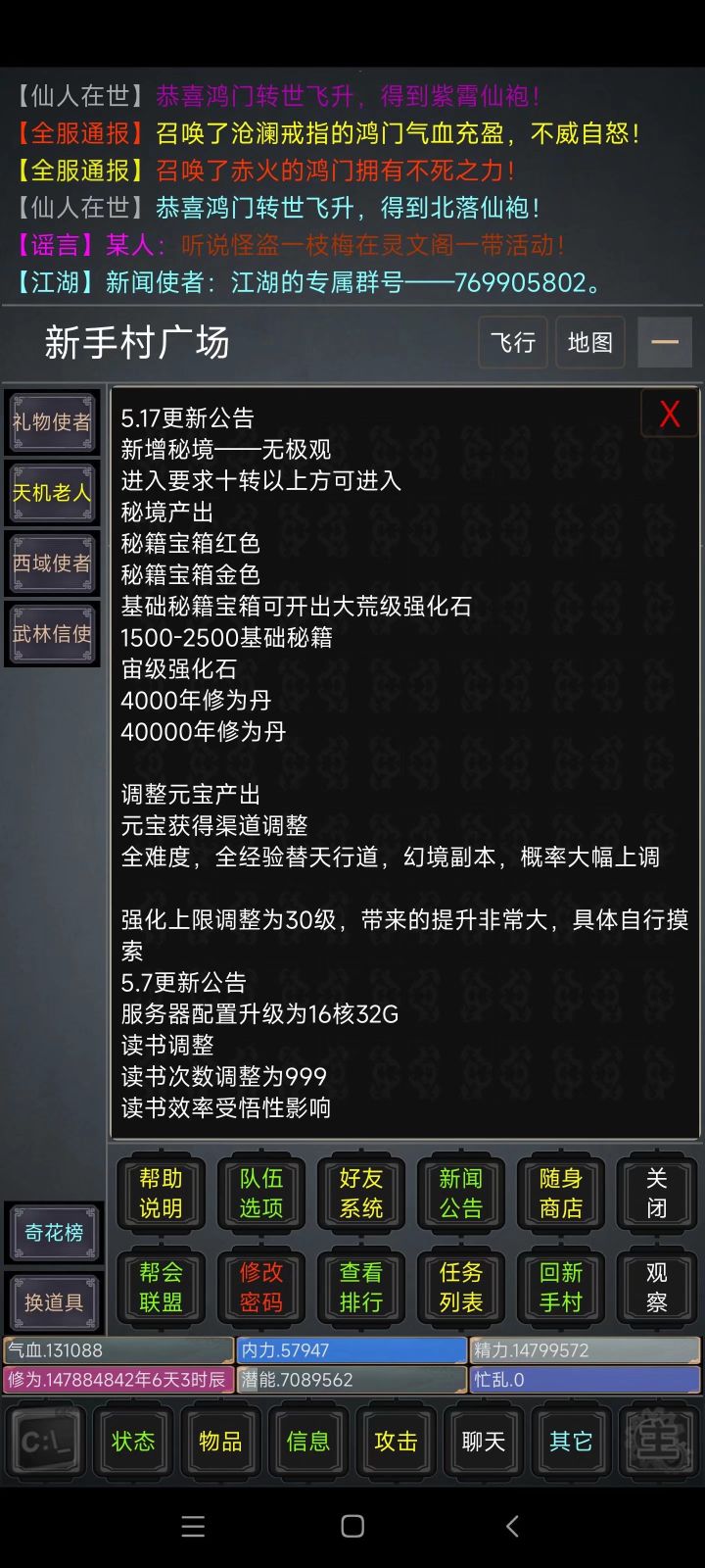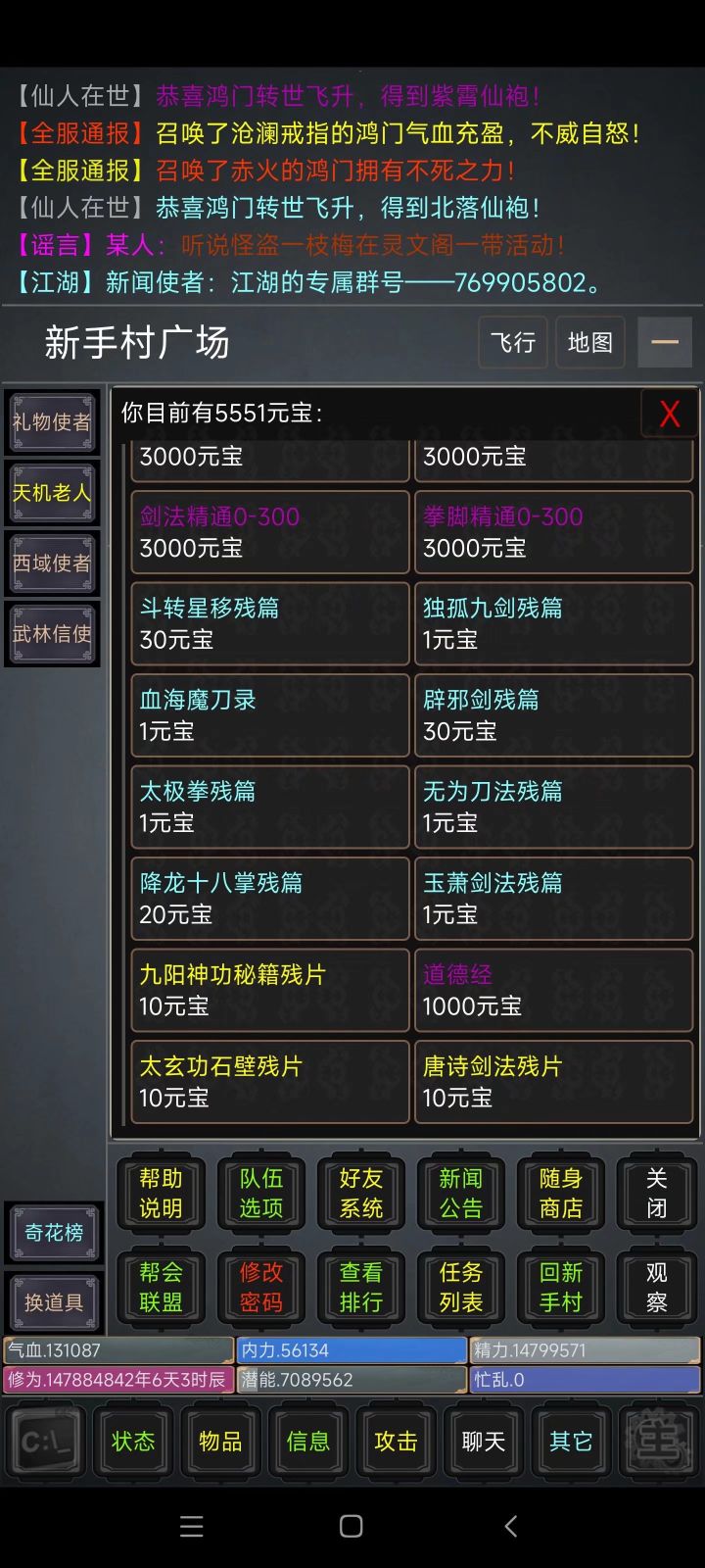 3.20更新公告商城新增300基础技能书更新群百人礼包一套萌新装备300颗基础回复药品100颗高级潜能丹祝各位武运昌隆,红红火火!!!#杂谈征稿#攻略#游戏安利#游戏推荐#游戏讨论#游戏福利
