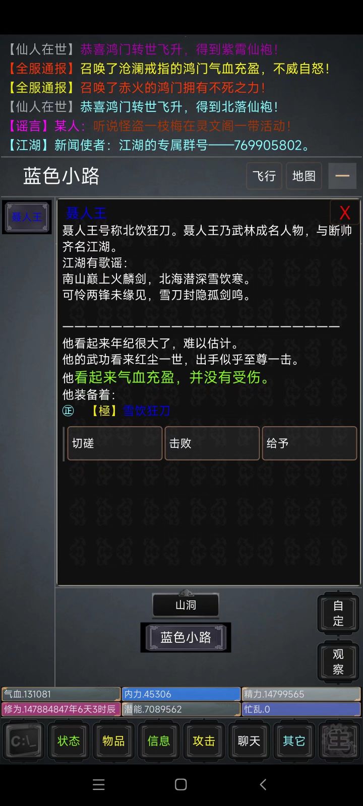 刚开服两天,今天玩了下,增加了新门派白云城,加了新武学太玄一体功,作者还准备加九阳,唐诗等等,观望中