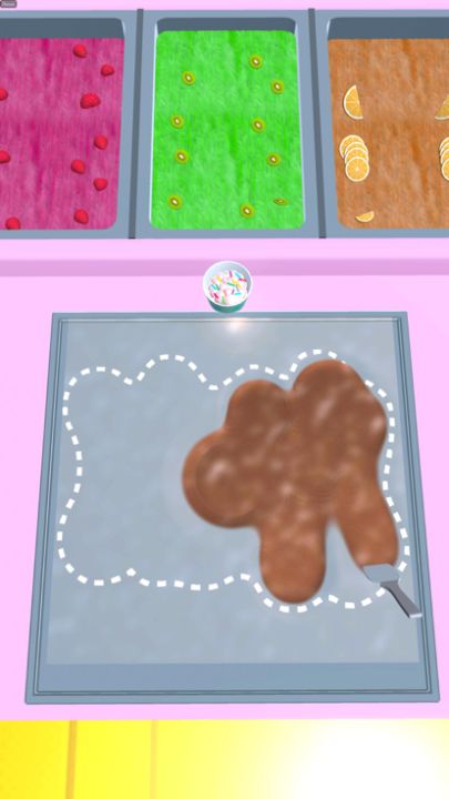 summer is coming. Who is ready for cool ice cream. Start making ice cream balls and add some sauce. And there you go, a customer with a happy face.