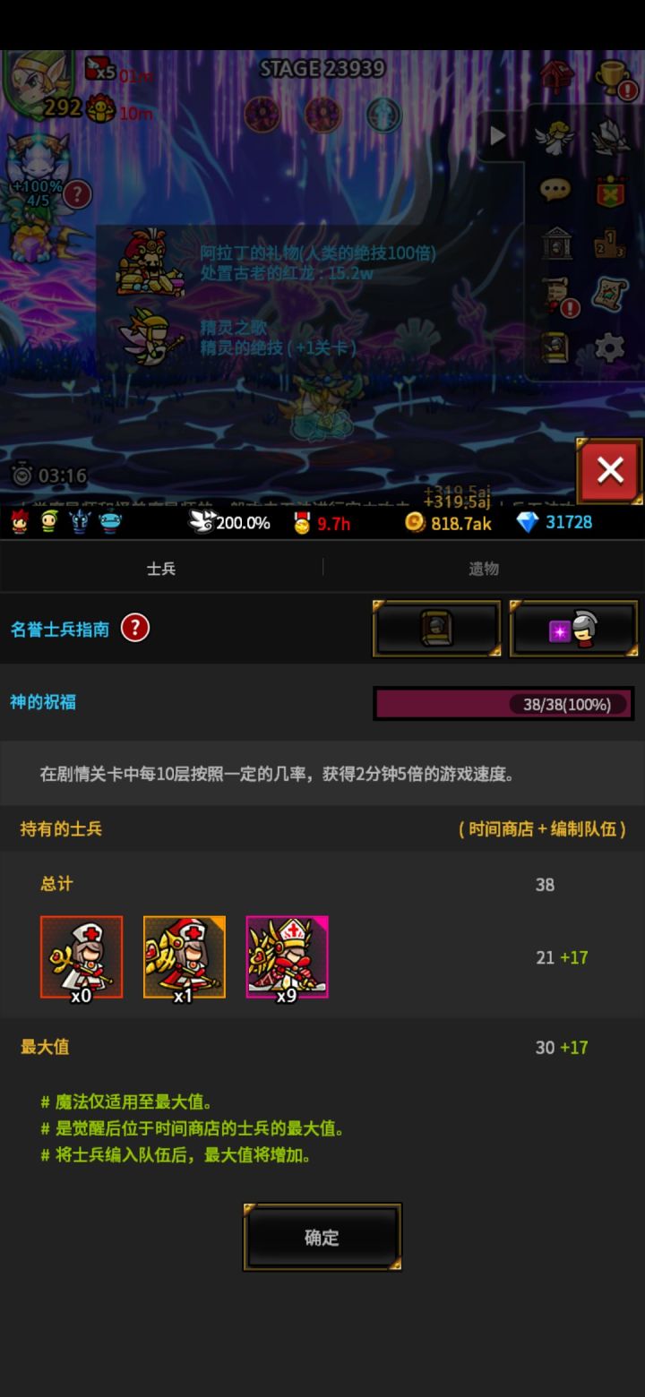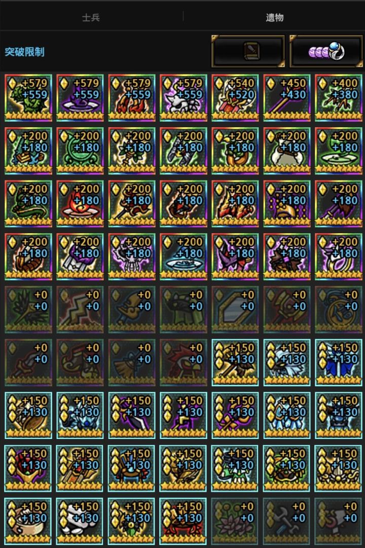 8、9星遗物搭配参考(by:布告士)9星优先点满2件 4属性搭配选择1:黑暗精华 亡灵爆伤+加金币伊格尼斯耳环 亡灵攻击力+减士兵搭配选择2:古代丛林守护者披风 亡灵攻击力+加金币双颅骨耳环 亡灵爆伤+减士兵如果没有9星T1推荐可以少量8星T3用8星T2或8星T3的人也是优先考虑上述4项属性缩短任务时间大约540~550级能任务1秒看石板累积加成多少减任务开启200级可以