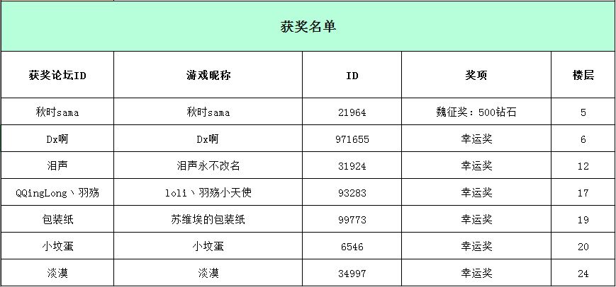 进击的吐槽圆满结束啦~ 感谢大家的意见和建议,你们的声音我们已经收到,之后我们会继续优化《放学别跑》的~ 考虑到这次大家的回复都很热情,所以我们额外增加了幸运奖的名额,以下是获奖名单 以上获奖的小伙伴,会在3天内收到奖励~ 没有获奖的小伙伴也请不要沮丧,之后我们会有更多的福利活动,请多多关注论坛和公众号噢~ ———————————————————原文—————————————————— Hi~