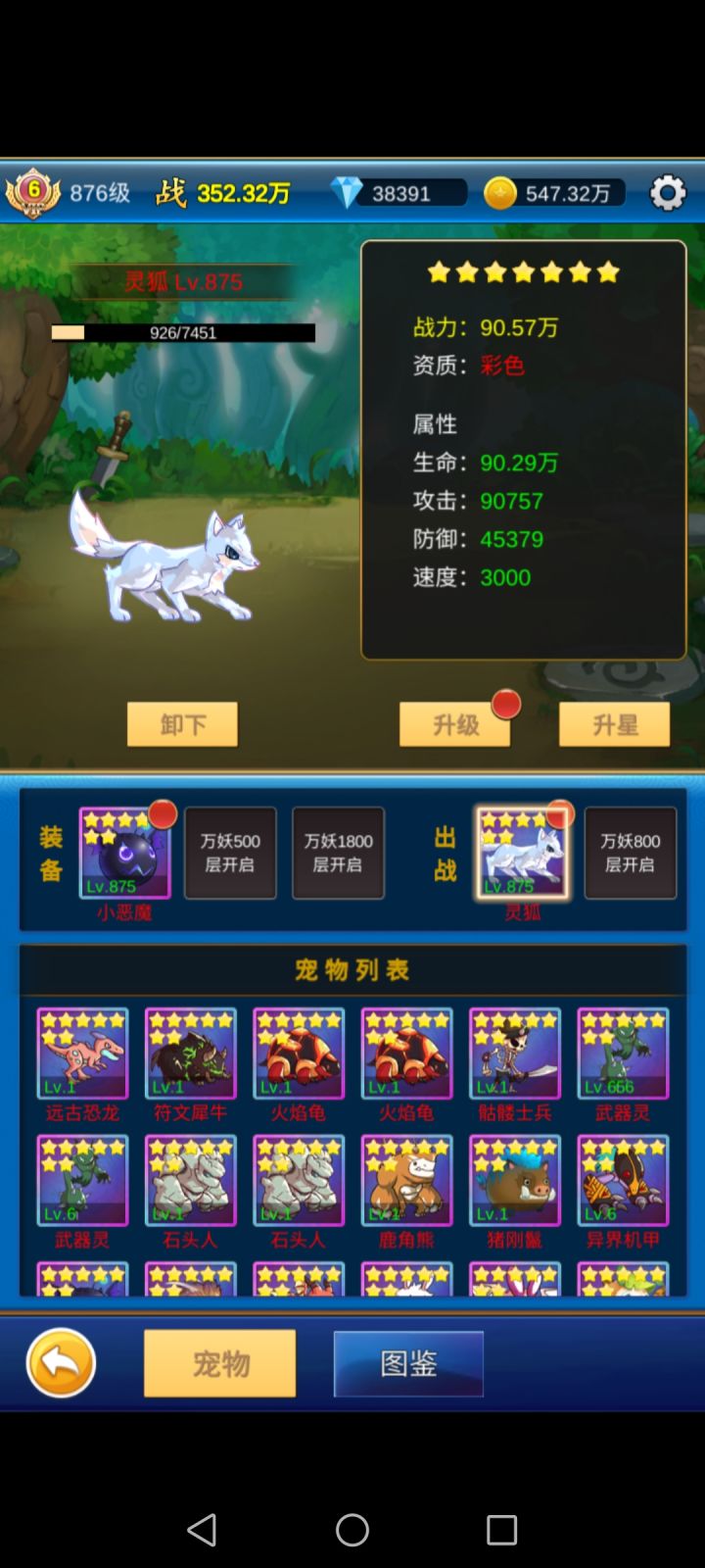 虽然同等级它竟然会比第一只红宠弱这么多,竟然还是各属性都弱,但它可爱啊!(而且,小狐狸是出货率最低的,但无所谓再怎么难升星我也养)