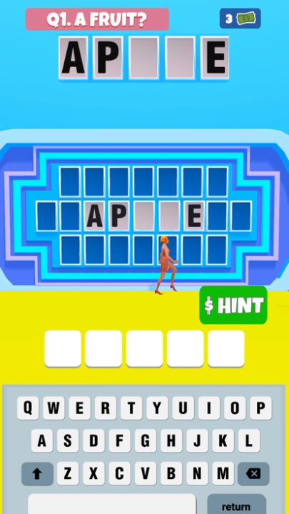 Turn the wheel to get the prize, then hop on a runner area to collect the letters. Answer the question with the letters appear on the panel. If you can not find it , you buy hints to solve it.