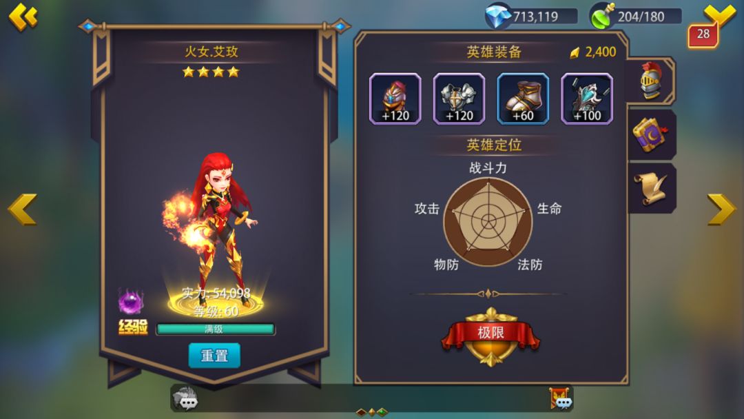 游戏主要角色介绍1.游戏中主要角色均以英雄的形式存在,玩家可以通过通关探险、完成任务、购买礼包等不同形式获得。 2.火女.艾玫 火女.艾玫:“光之神将指引我们,只要我们真心的侍奉” 光之神的女祭司,因侍奉光之神而获得了永生宝石,这颗宝石可以使其青春永驻,又可以助她施展魔法,她可以操纵火球形成巨大的攻击力,又可以让人脚下喷发无名烈火将人烧死!她被光之王派来附着真正的人皇,然而她从火之预言中看到的人