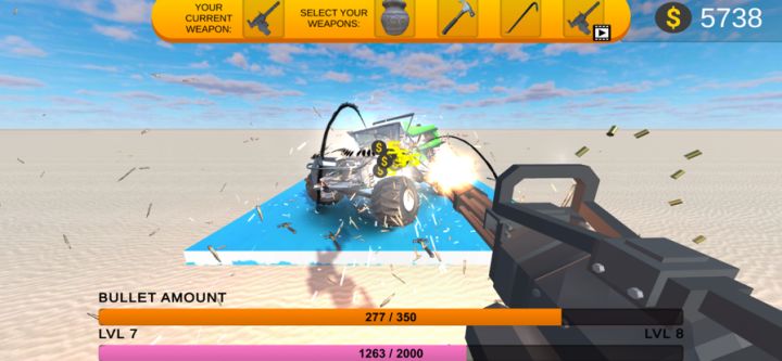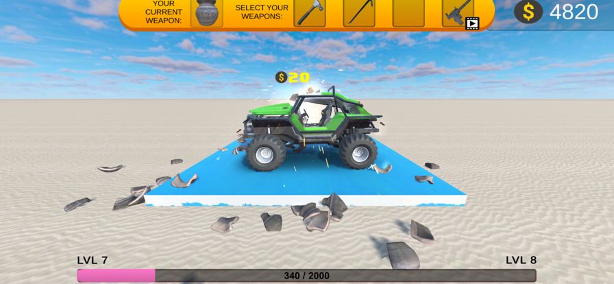 一开始您将获得一辆免费汽车,选择您的武器进行破坏和拆除德比摧毁汽车,升级时您将获得新的武器